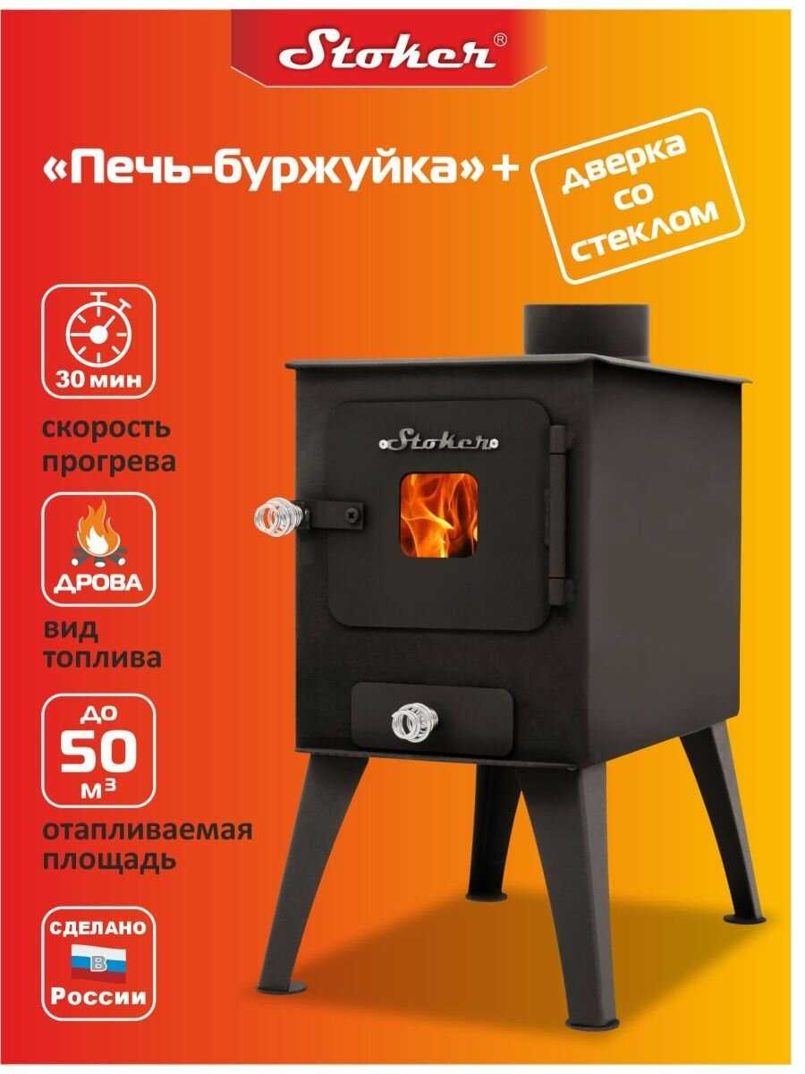 Характеристи Stoker Садовая печь буржуйка со стеклянной дверцей