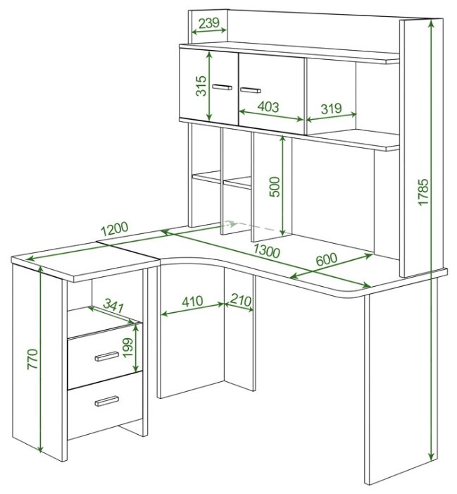 Мэрдэс компьютерный стол Домино Lite СКЛ-УГЛ130+НКЛХ-130