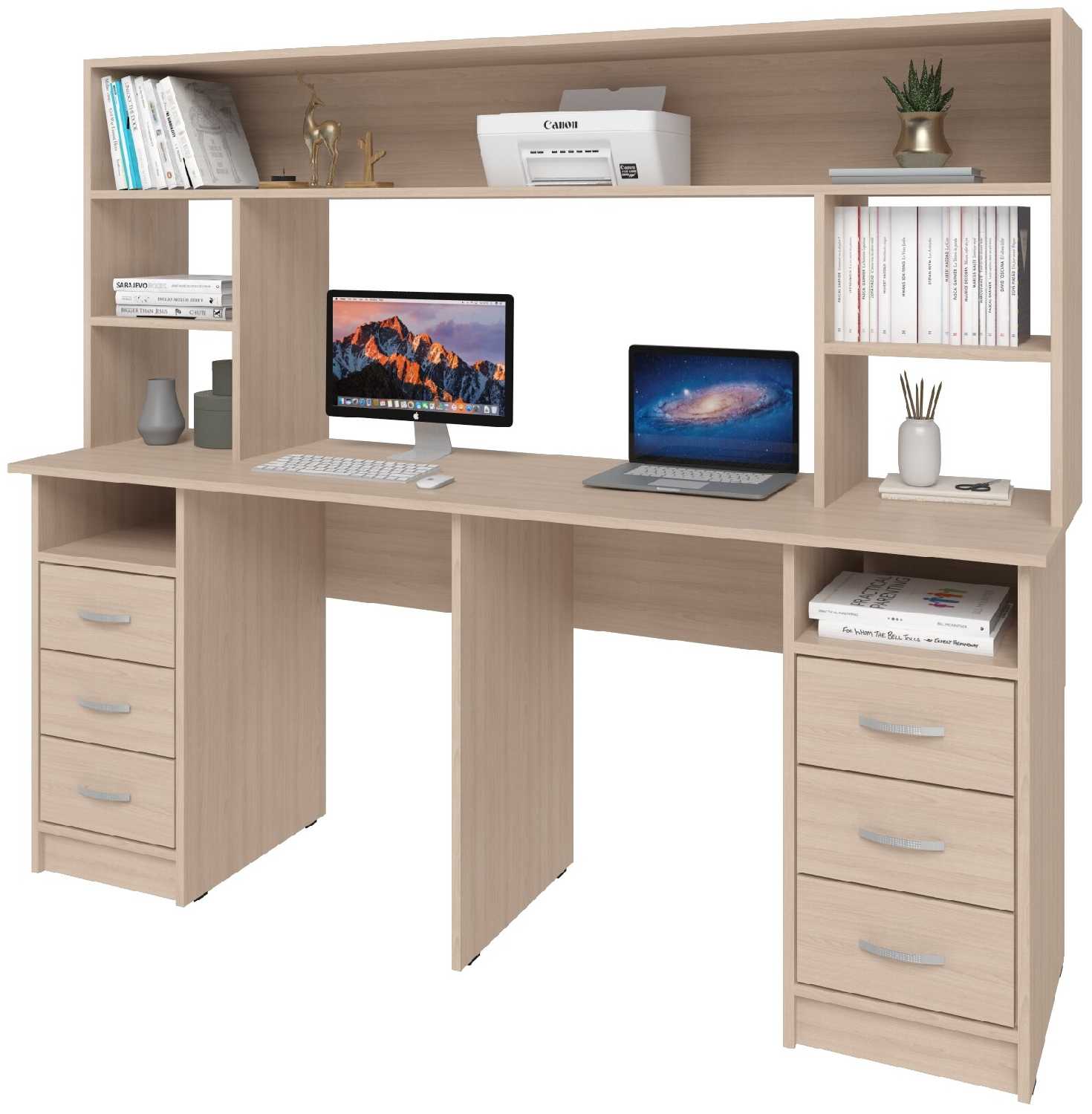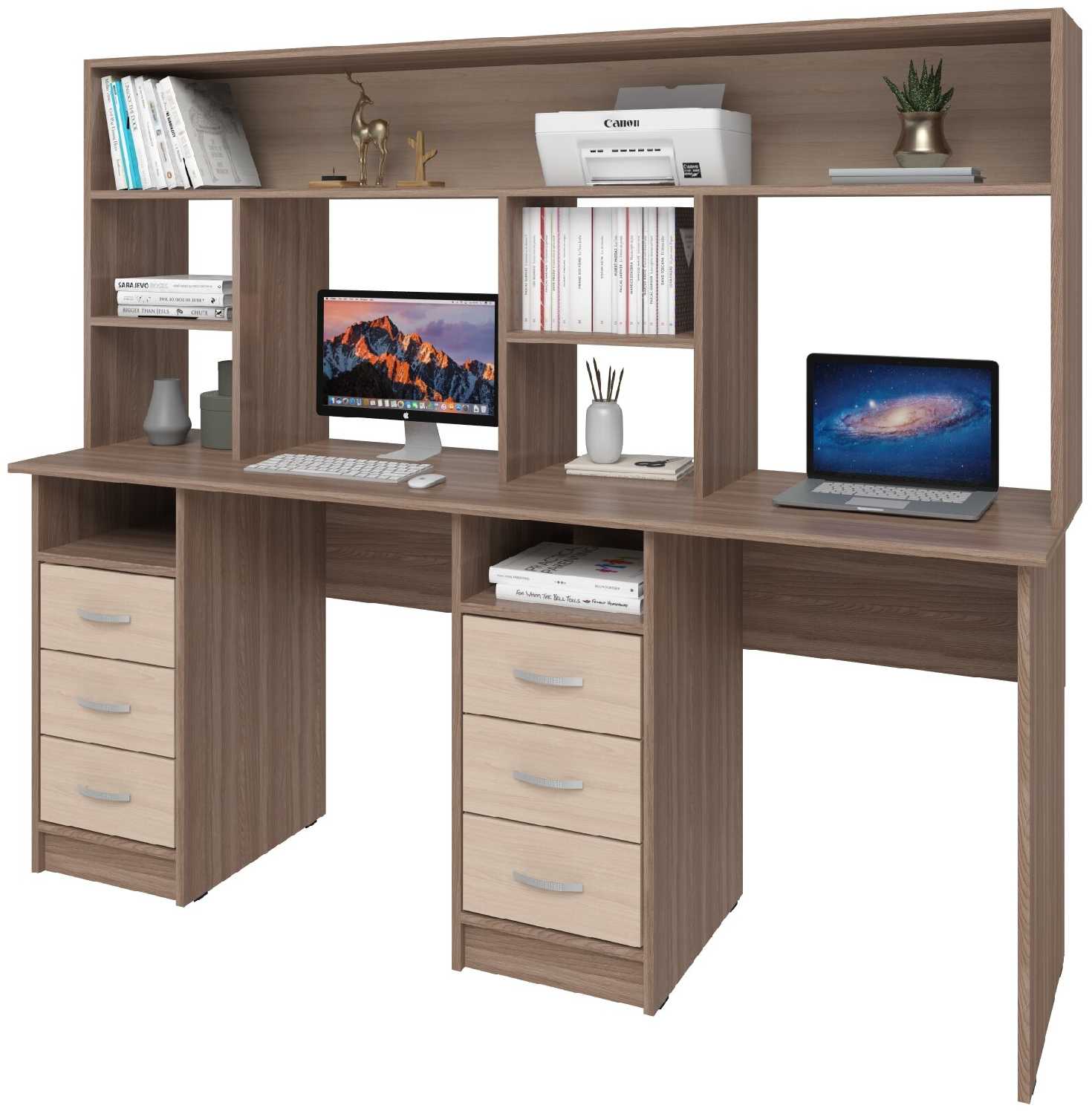 7.1/10 балловСитиМебель письменный стол на два рабочих места с 2 тумбами по 3 ящика по краям стола и надстройкой