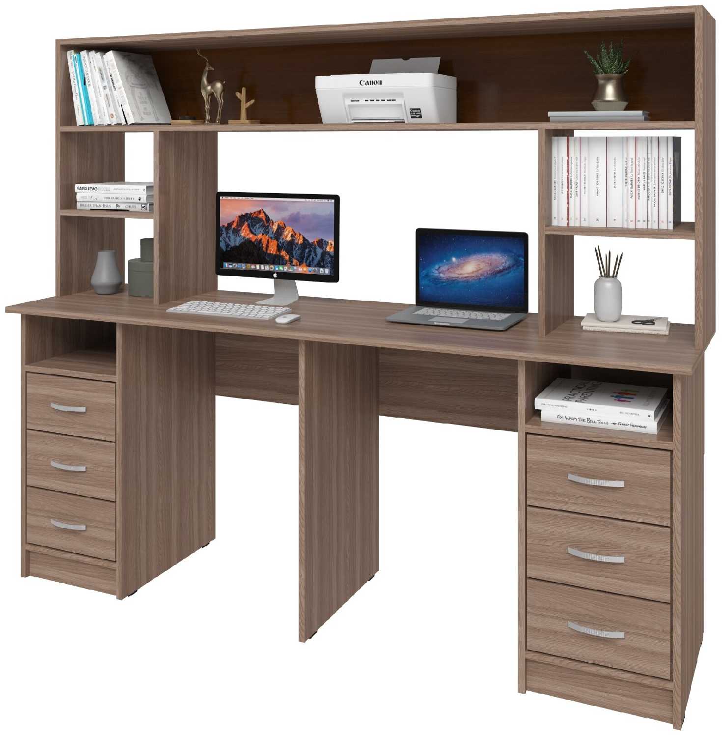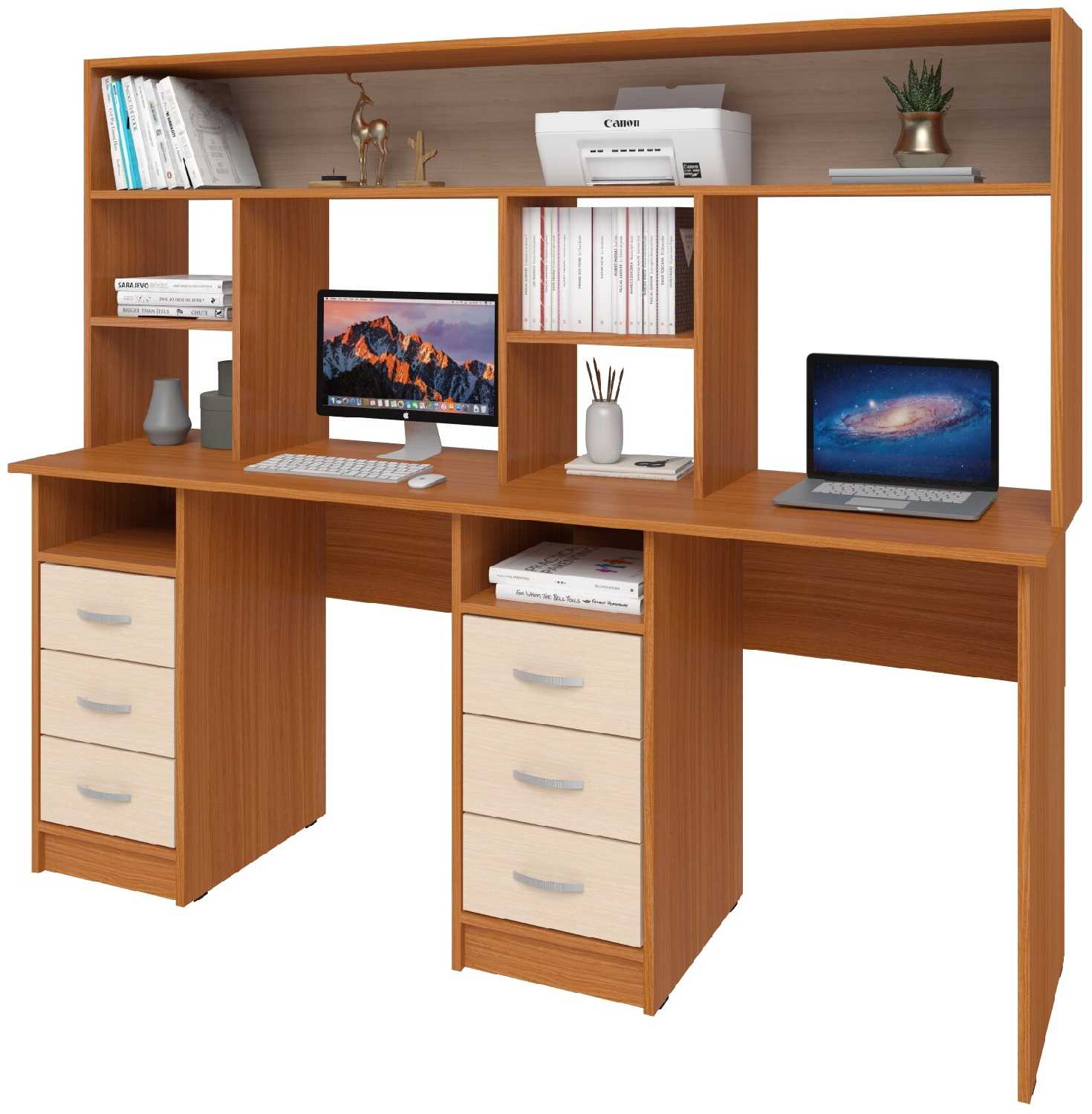 6.6/10 балловСитиМебель письменный стол на два рабочих места с 2 тумбами по 3 ящика по краям стола и надстройкой