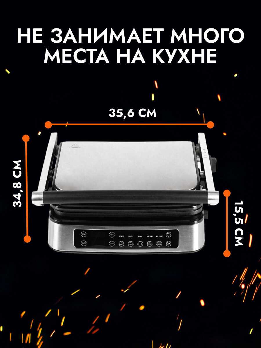 - Возможность идеальной прожарки стейков (включая медиум-рэр) без профессиональных навыков благодаря точному контролю температуры.