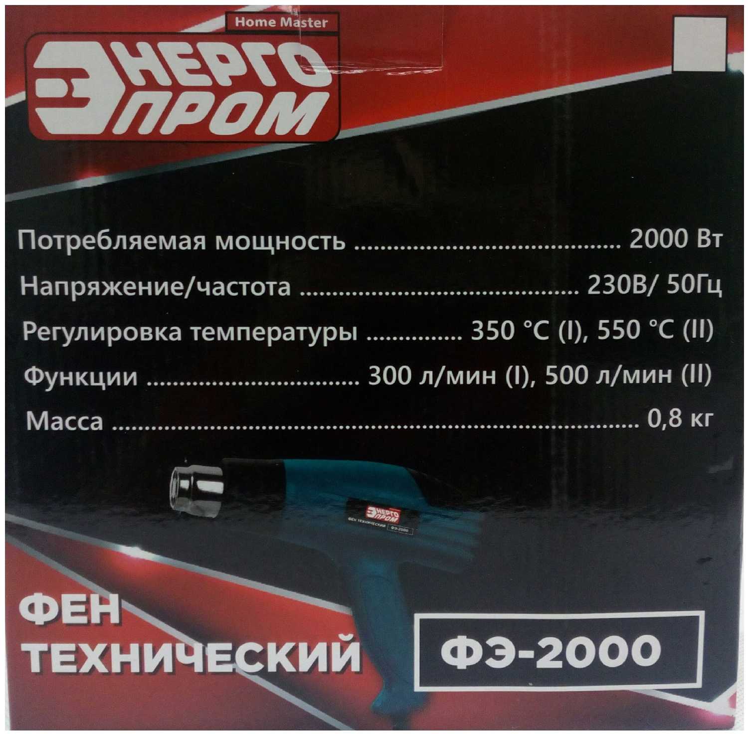 Энергопром Фен, Фен строительный, 2000Вт, разморозка труб, подсушивание краски, 350-550 градусов