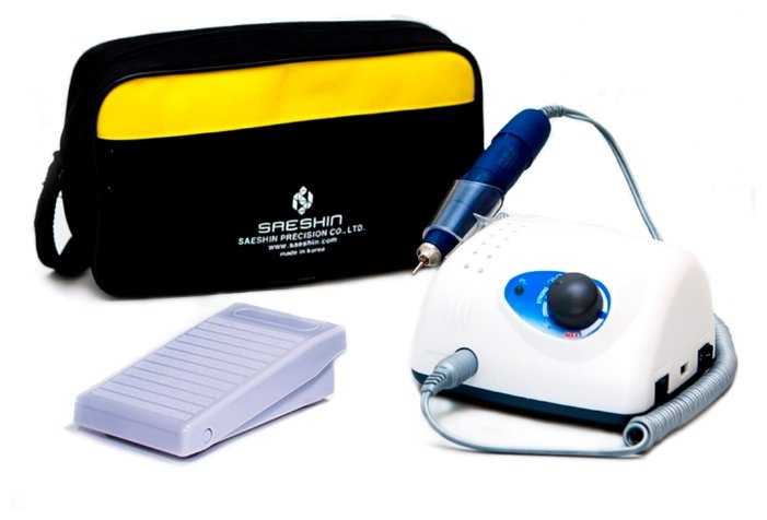 - для маникюра и педикюра мощность 64 Вт максимальная скорость вращения 35000 об/мин реверс зажим: цанговый с педалью отсек для насадок с футляром