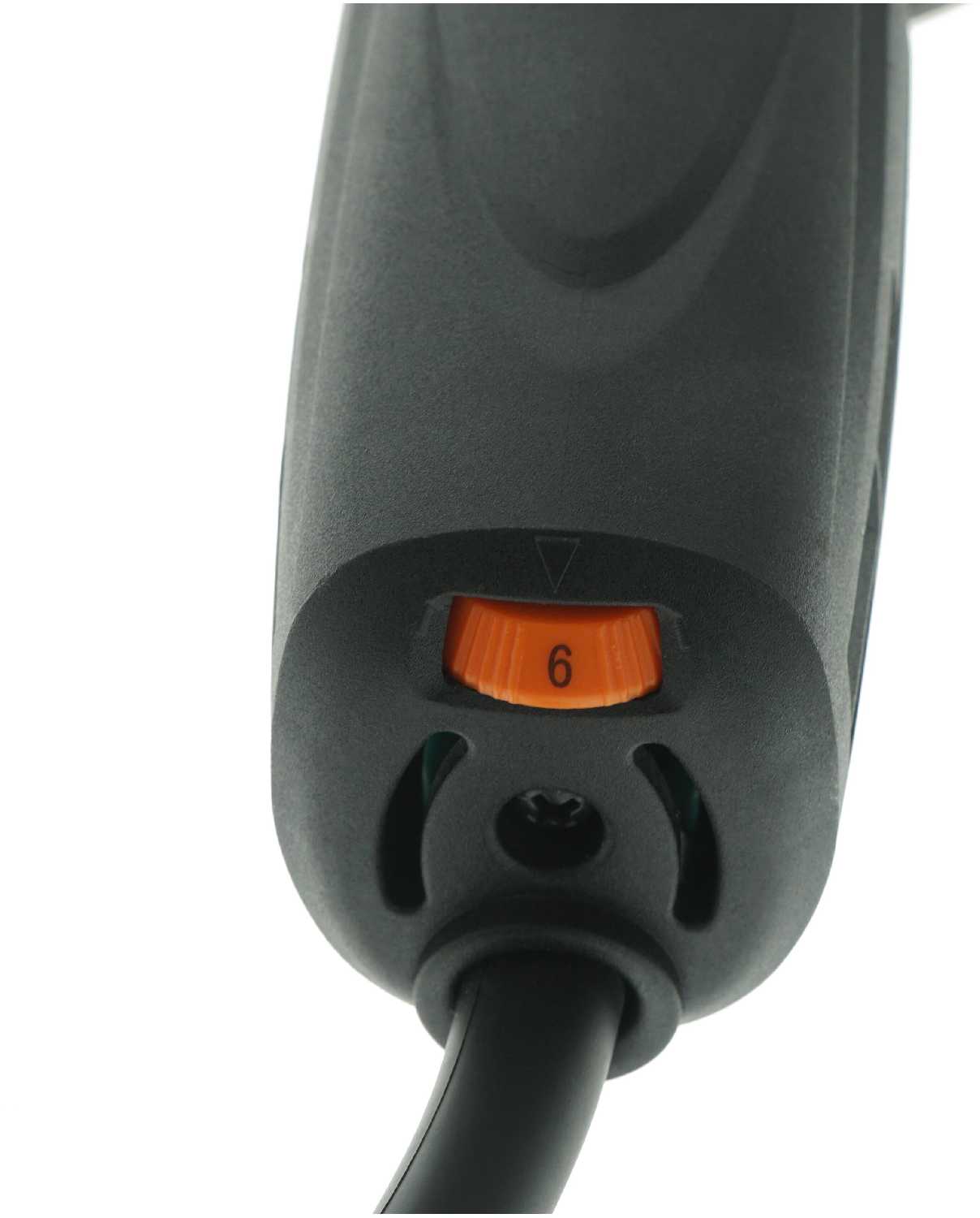 Регулировка оборотов, плавный пуск, ручка со встроенным карандашом, быстросъемный кожух, длинный кабель 4м