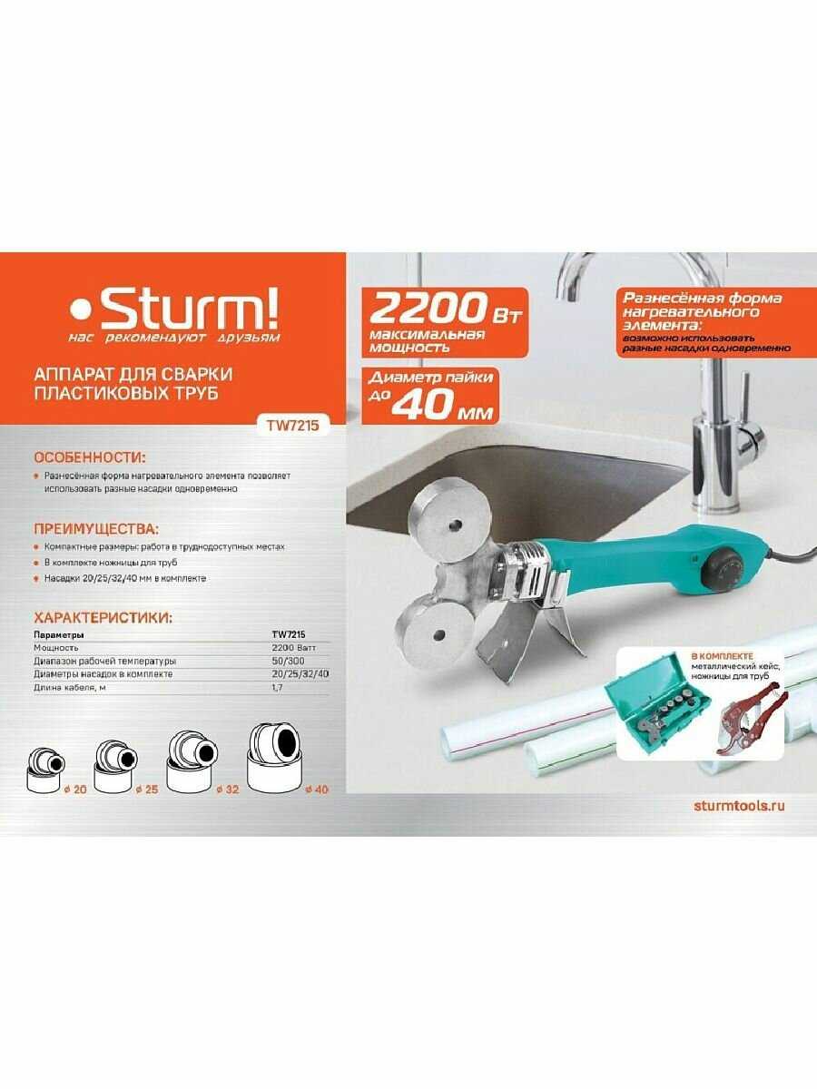 Лучшие цены сегодня на Sturm! Аппарат для сварки пластиковых труб (TW7215)