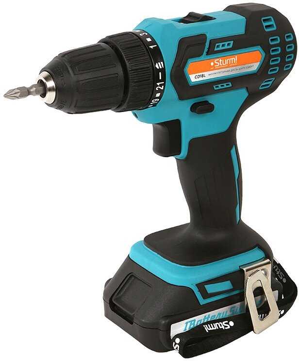 | Дополнительная информация : | Sturm CD3618T — аккумуляторный 18 В двухскоростной шуруповерт бытового назначения. Является частью линейки 1Battery System, обеспечивающей совместимость одного и того же аккумулятора с целым рядом инструмента |