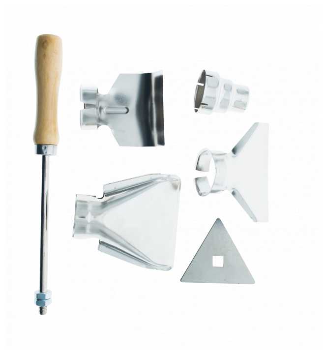 Удобный кейс, 4 сменных насадки для всех видов работ, скребок для снятия краски.