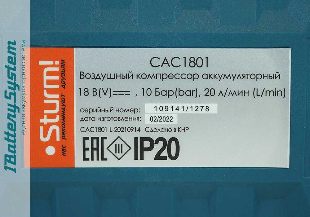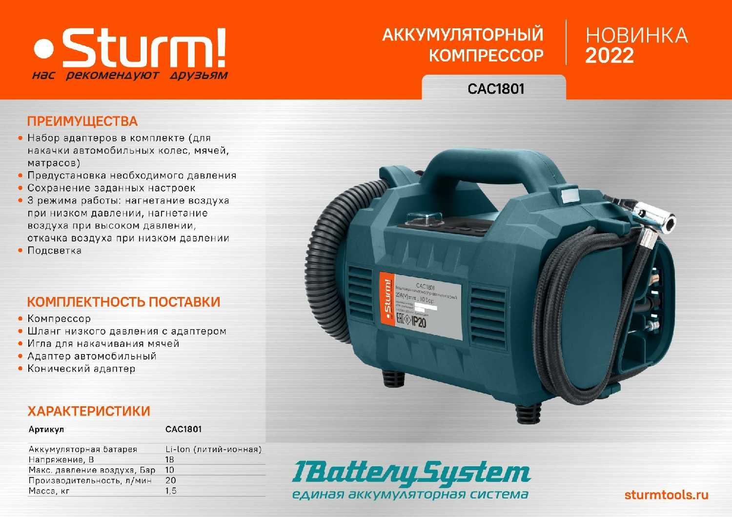 Отзывы о Аккумуляторный компрессор Sturm! Компрессор (CAC1801)