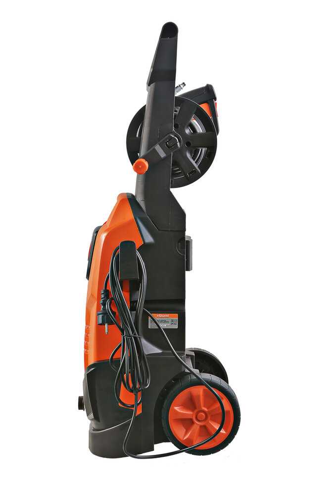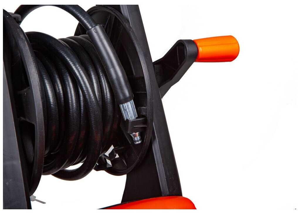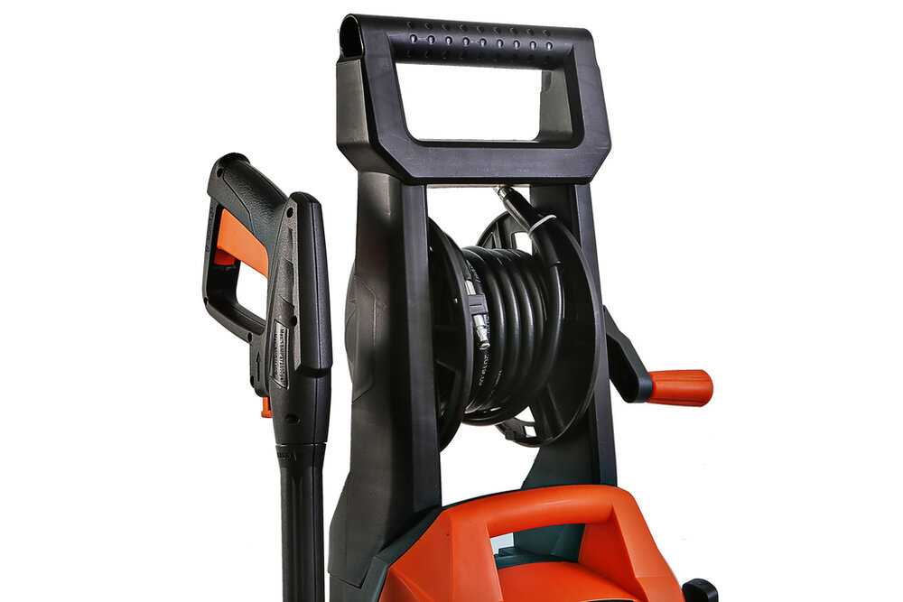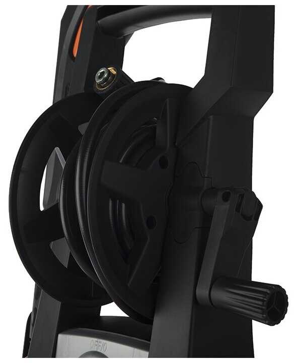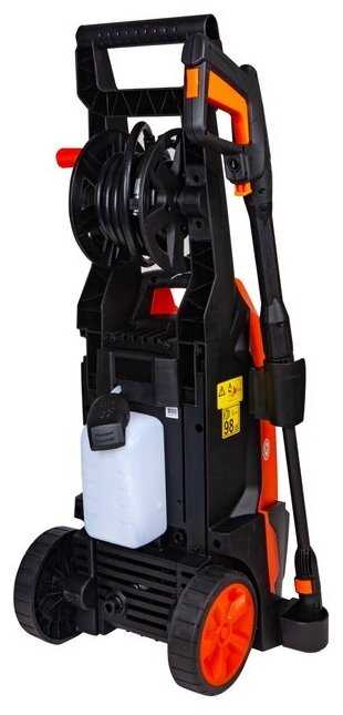- + Недорогая, качественная минимойка. Барабан для шланга. Хороший напор. Встроенный бачок для шампуня. Хорошо смывает грязь.