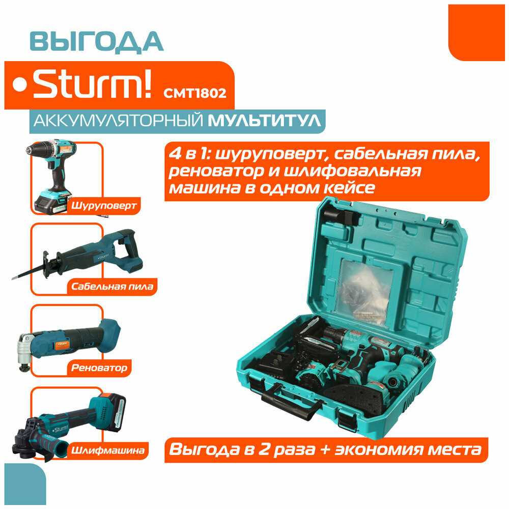 Отзывы о Аккумуляторный мультитул Sturm! CMT1802 1BatterySystem