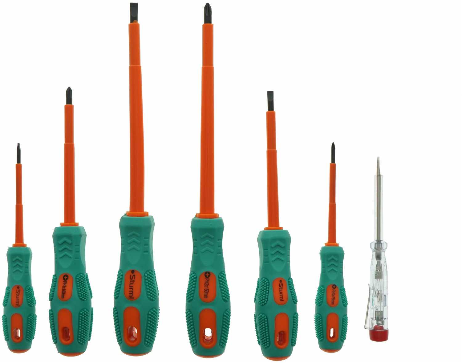| Ручной инструмент подробно : | Набор диэлектрических отверток Sturm! включает 7 предметов, предназначенных для работы с крепежом под напряжением. В комплект входят 6 отверток с различными типами наконечников (SL и PH) и тестер напряжения. Отвертки изготовлены из хромованадиевой стали, что обеспечивает их прочность и долговечность. Двухкомпонентные ручки обеспечивают удобный захват, а магнитные наконечники упрощают работу в труднодоступных местах. Набор поставляется в удобном тканевом кейсе, который позволяет компактно хранить инструмент. Это отличный выбор как для профессионалов, так и для любителей. |