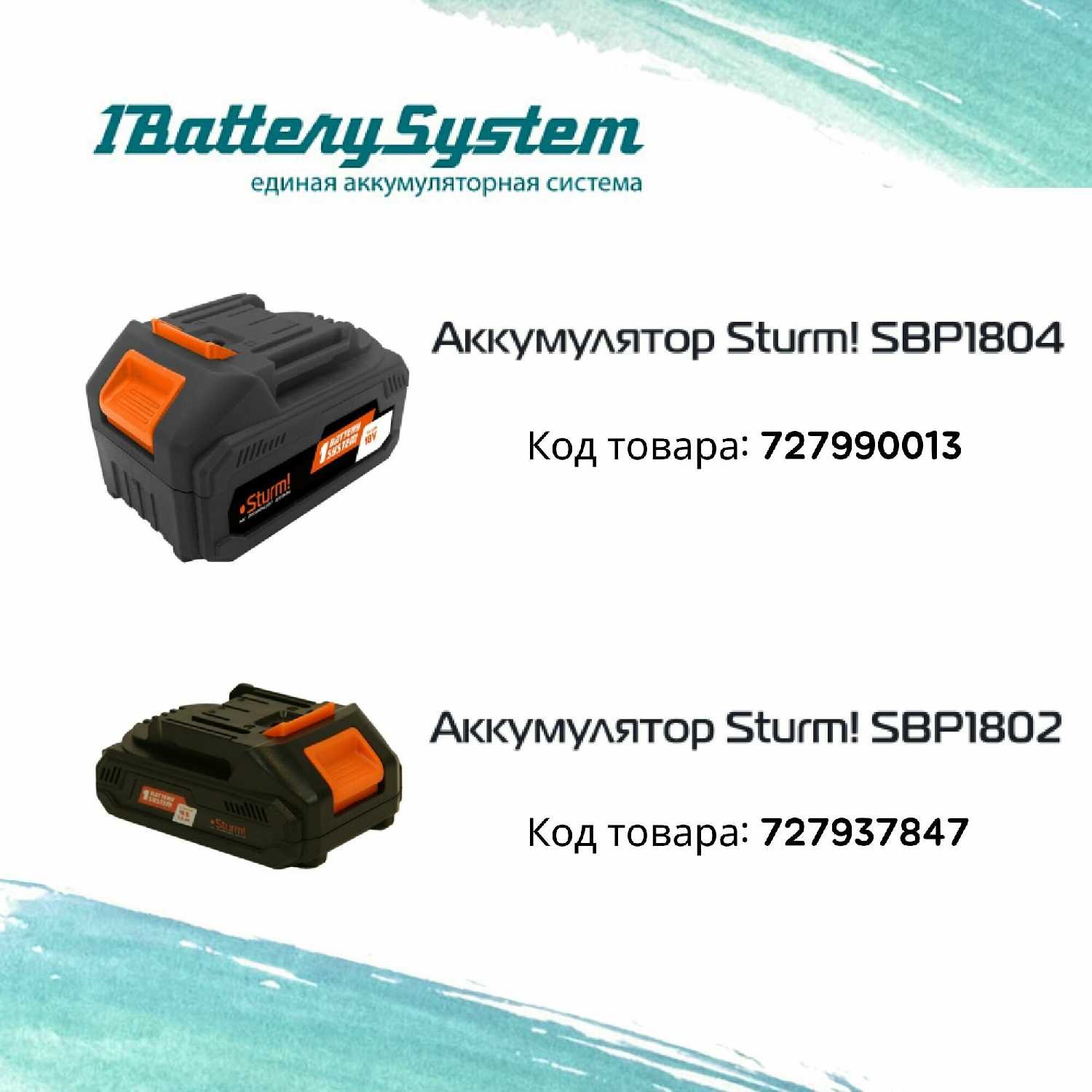 | Аккумуляторная система : | Sturm! 1BatterySystem 18V |