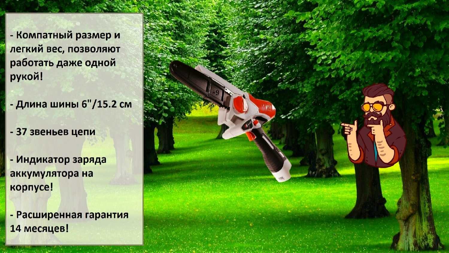 - Для базовых задач на даче (обрезка веток, заготовка дров) функциональности пилы достаточно.