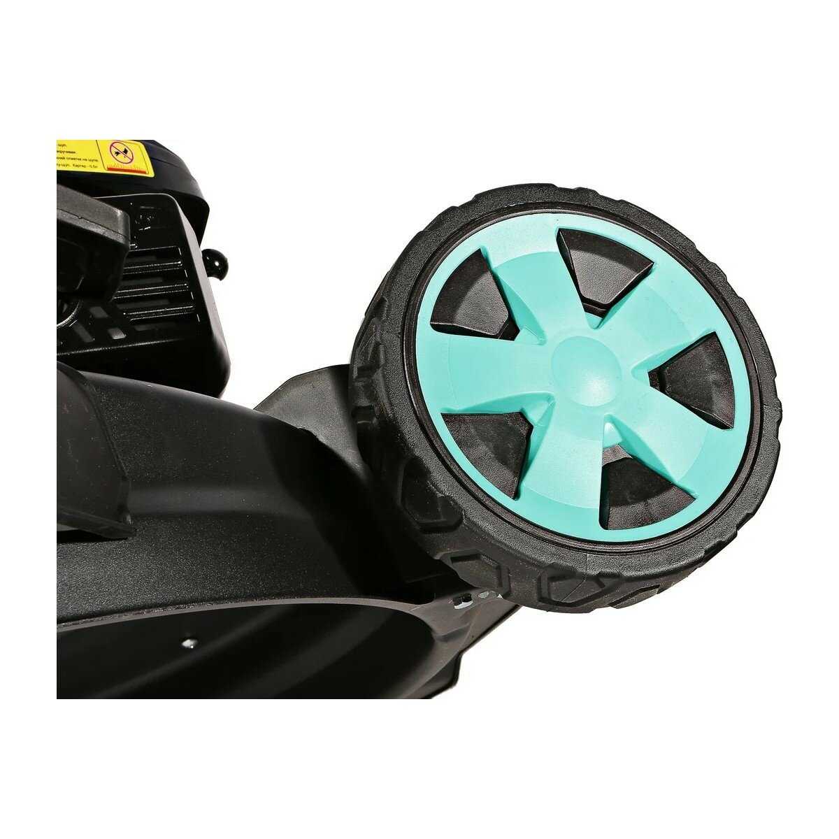 Легко мыть есть муфта для шланга - - Траву сыроватую или длиньше 20 см плохо закидывает в травосборник