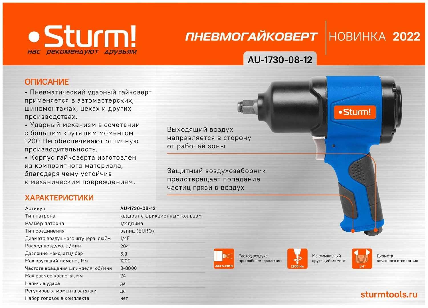 Sturm! Пневмогайковерт ударный (AU-1730-08-12?