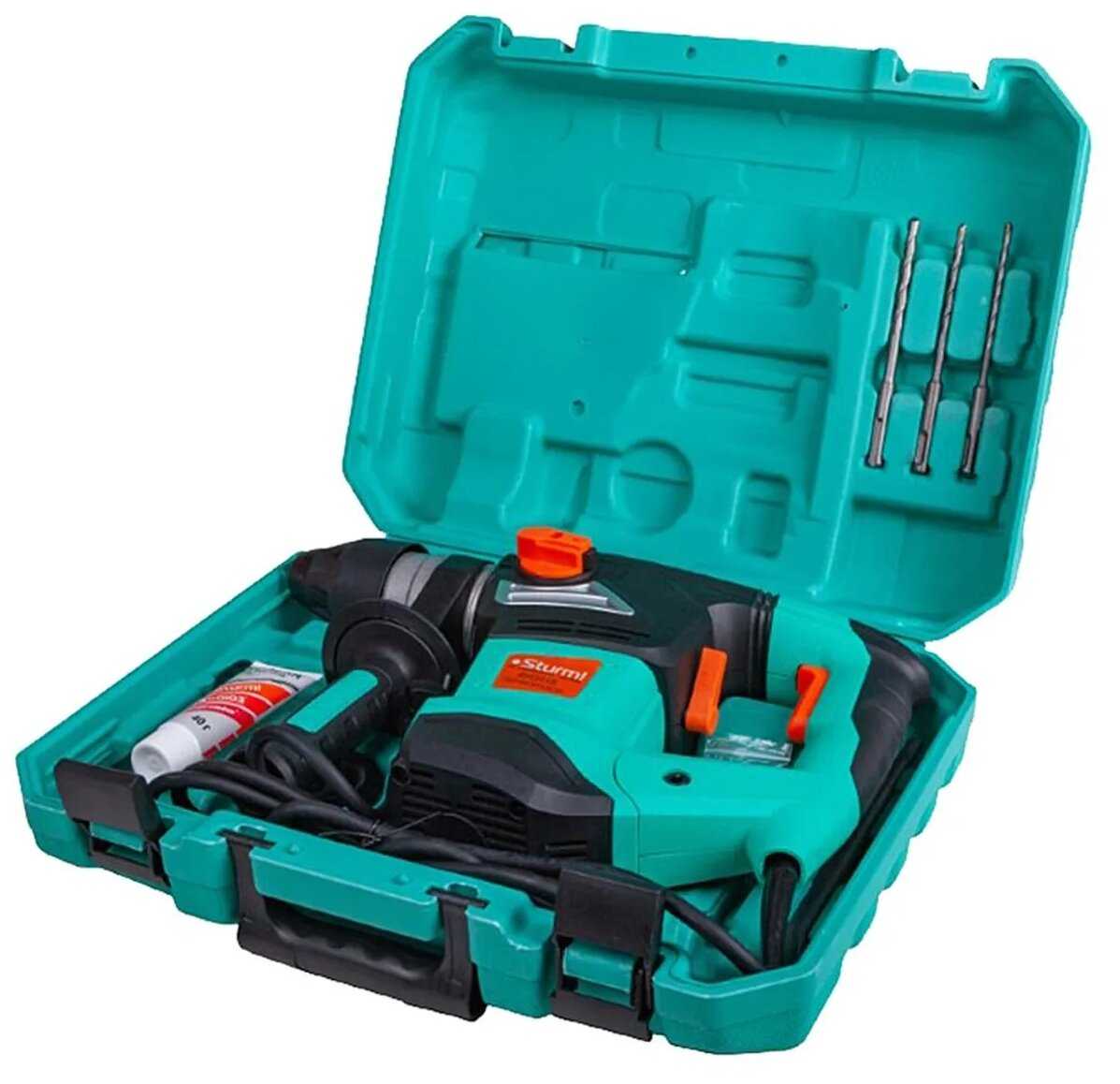 - Кейс для хранения, смазка, буры, зубило, запасные щётки (у большинства).