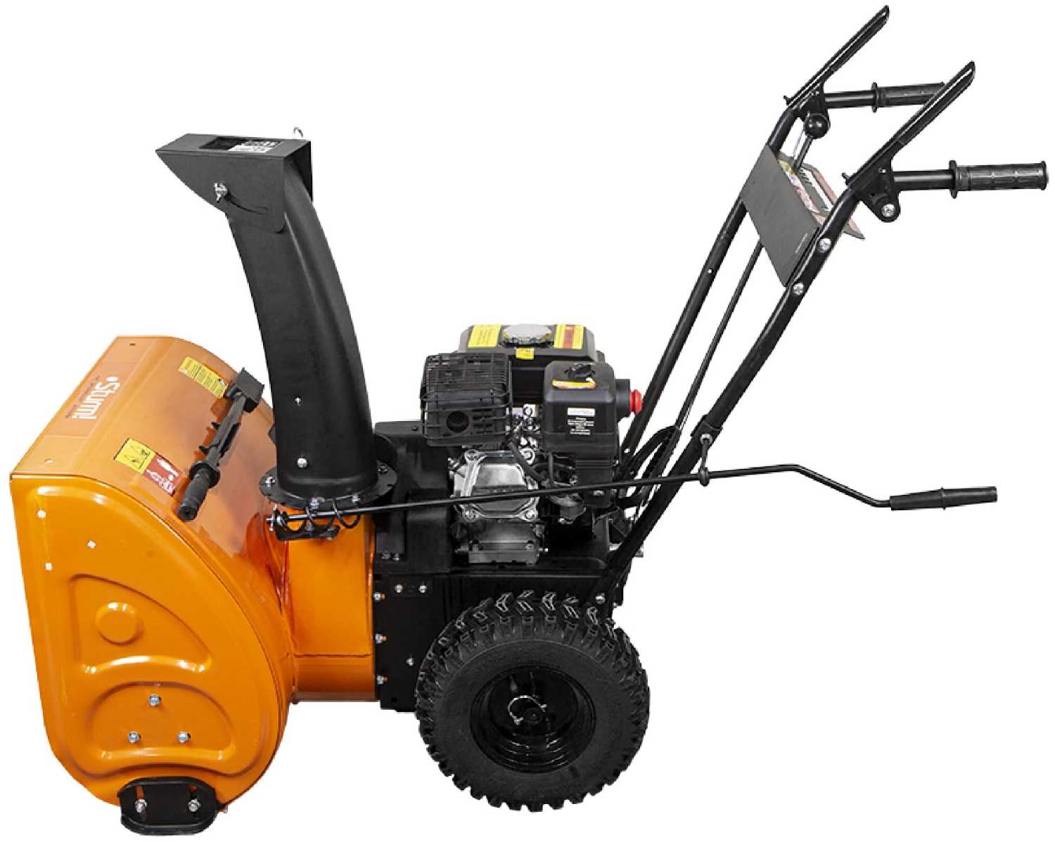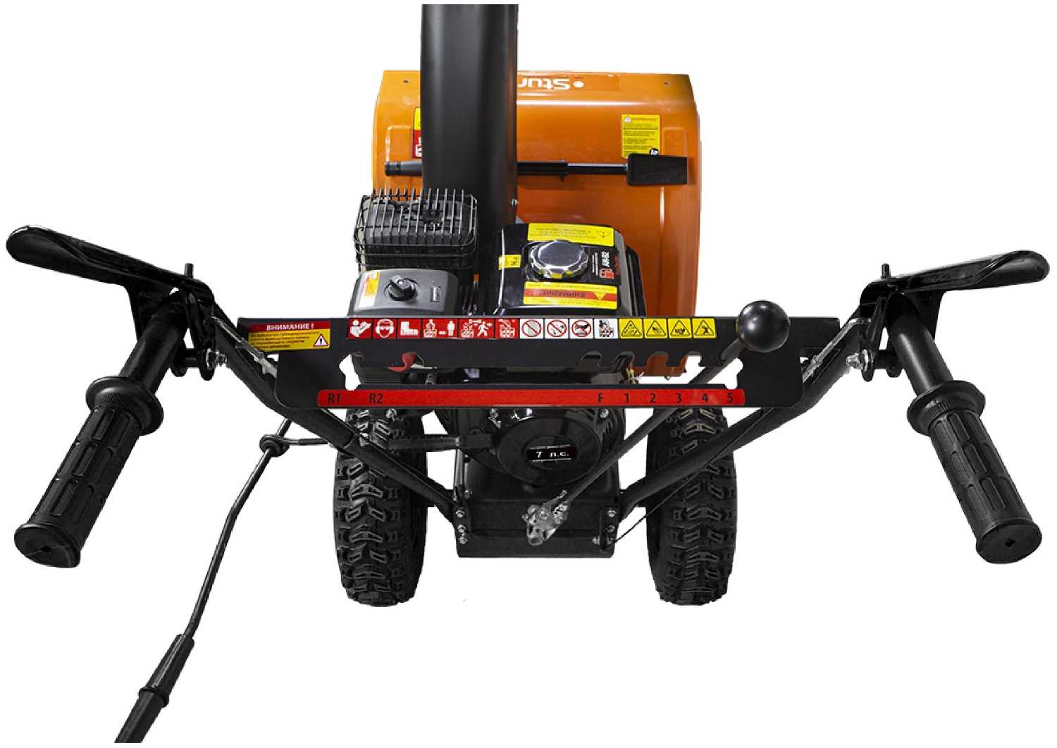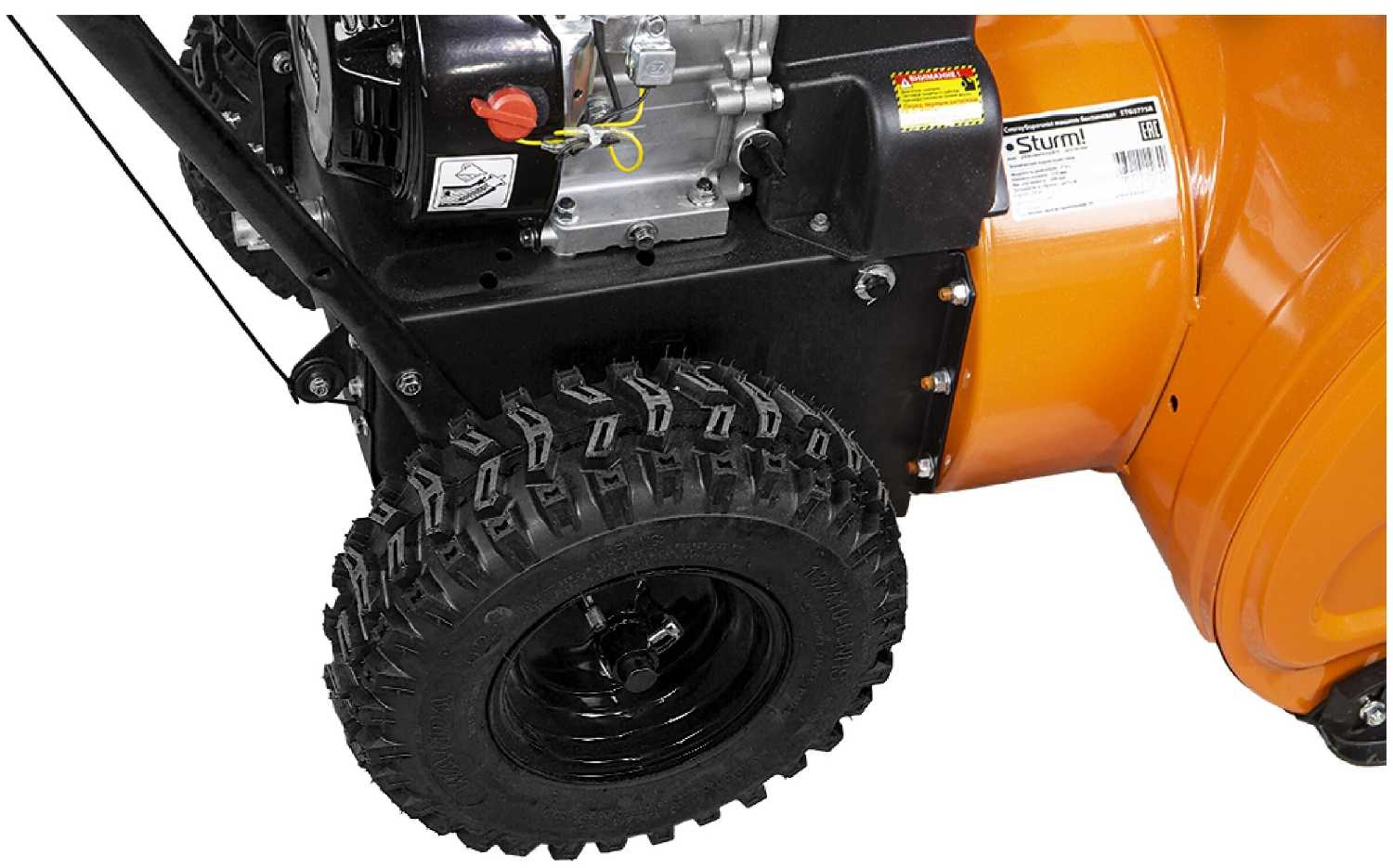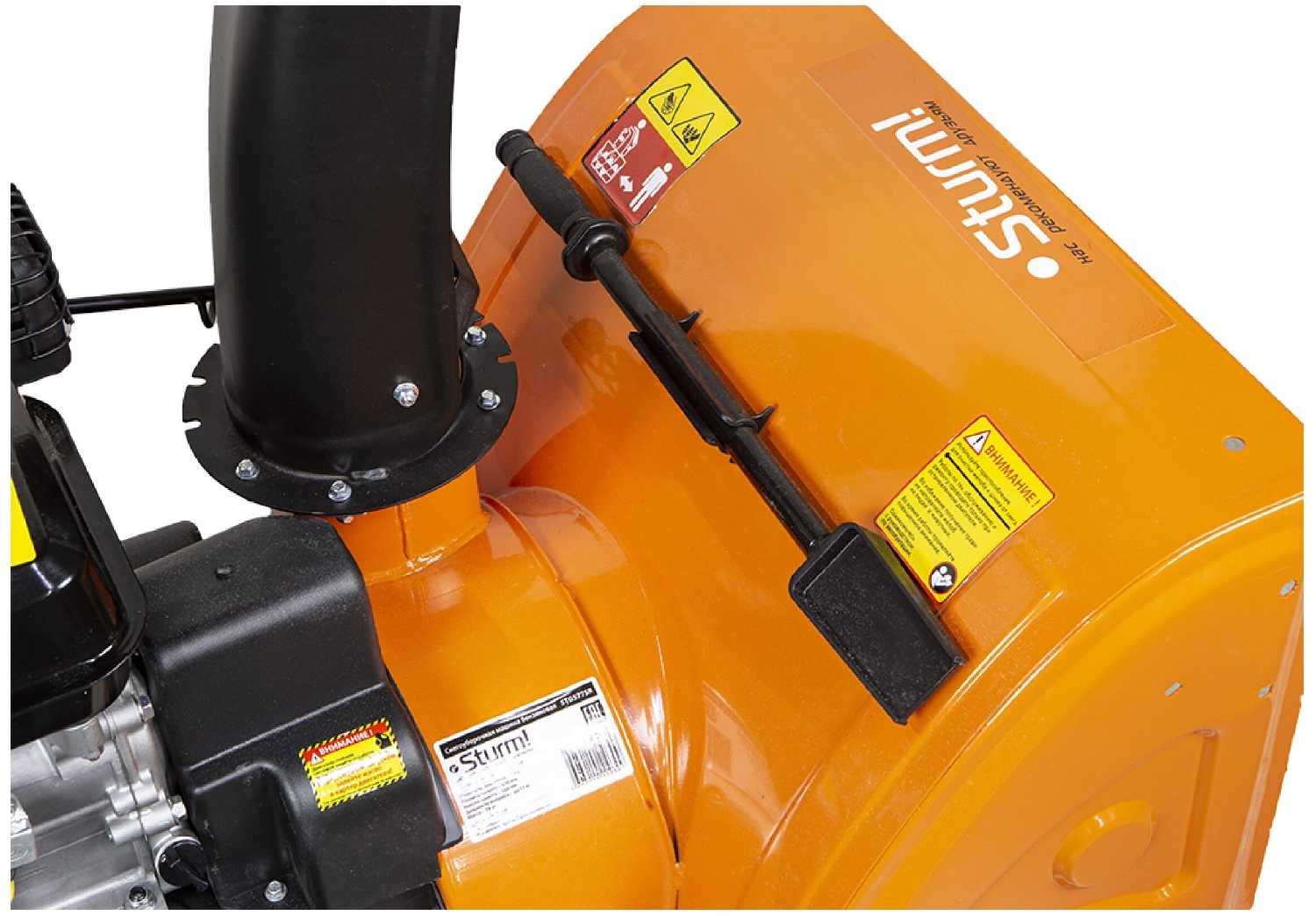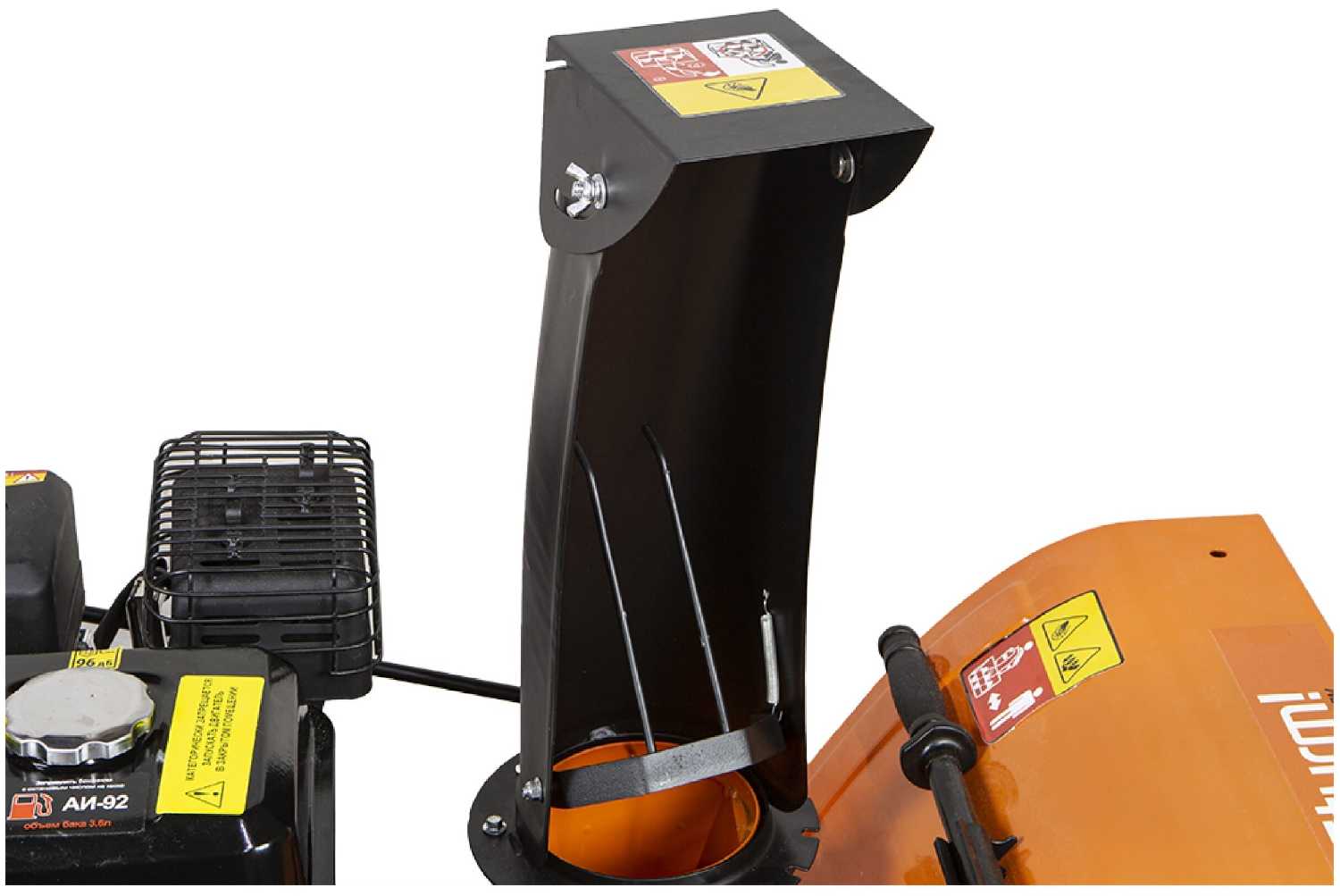 комплектация: руководство по эксплуатации, руководство по безопасности, блок снегоуборщика с двигателем 1 шт, рукоятки 2 шт, рычаг переключения передач 1 шт, рукоятка поворота желоба 1 шт, панель управления 1 шт, колеса 2 шт, желоб для выброса снега 1 шт, приспособление для чистки жёлоба 1 шт, пакет с крепежными элементами и комплектом инструмента