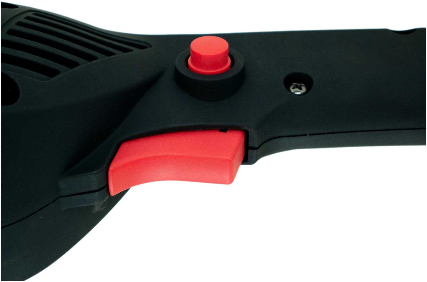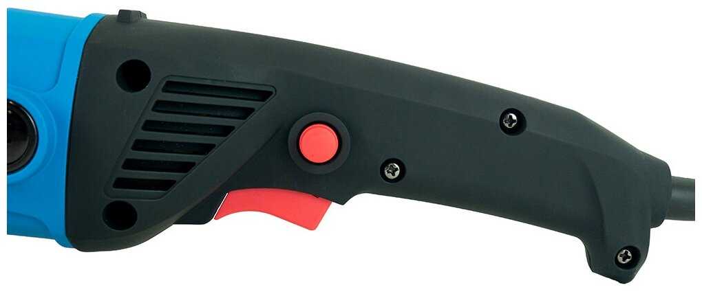 Пользователи отмечают компактность и относительно легкий вес инструмента, что делает его удобным для работы одной рукой, особенно в ограниченном пространстве. Узкая рукоятка с резиновыми накладками обеспечивает надежный хват, хотя некоторые столкнулись с их слабым креплением – накладки отклеивались через пару дней и требовали дополнительной фиксации. Расположение кнопки включения вызвало нарекания у части владельцев: её описывают как неудобную или тугую, а отсутствие стопорного крючка усложняет работу. Критичным недостатком признана конструкция кнопки фиксации шпинделя – при смене диска она легко ломается, выламывая часть корпуса, что делает невозможной дальнейшую замену оснастки без ремонта. Крепление защитного кожуха также вызывает жалобы на самопроизвольное развинчивание во время работы, что снижает безопасность. Пользователи подчеркивают удобство мягкого, гибкого кабеля, похожего на резиновый, который сохраняет эластичность даже на морозе.