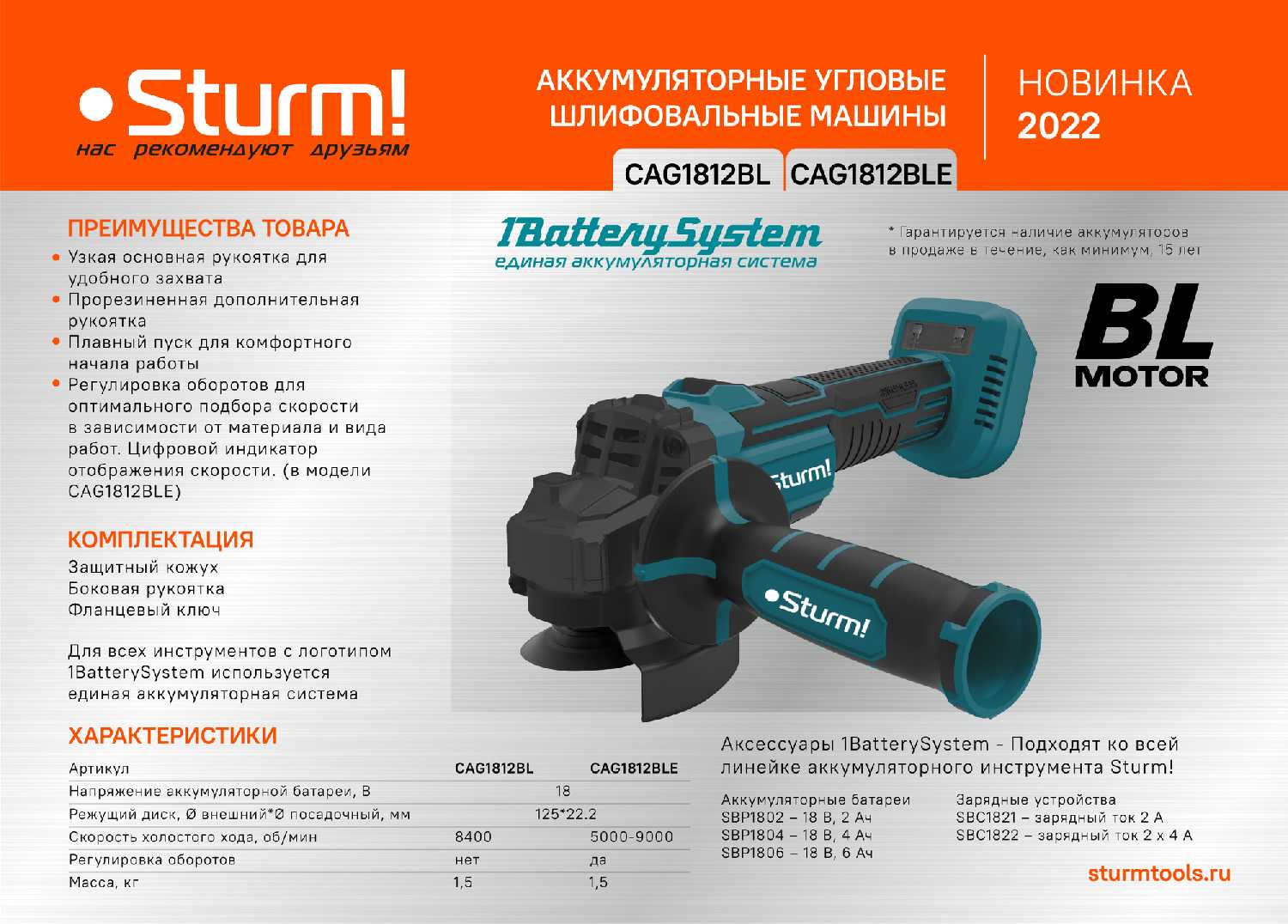Отзывы о УШМ аккумуляторная Sturm! CAG1812BL