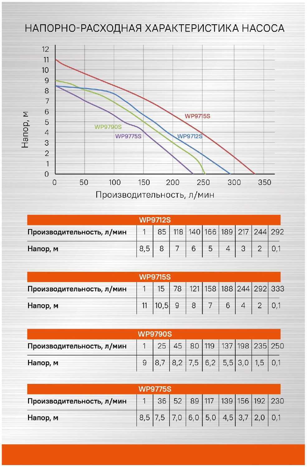 - максимальный напор: 9 м