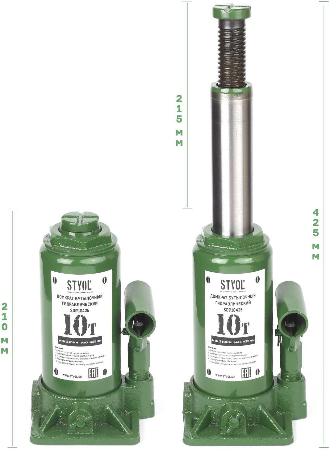 Характеристи STVOL Домкрат бутылочный гидравлический (SDB10425)