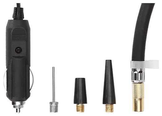 - Включает 3 переходника и дополнительные насадки для матрасов, мячей, велосипедов.