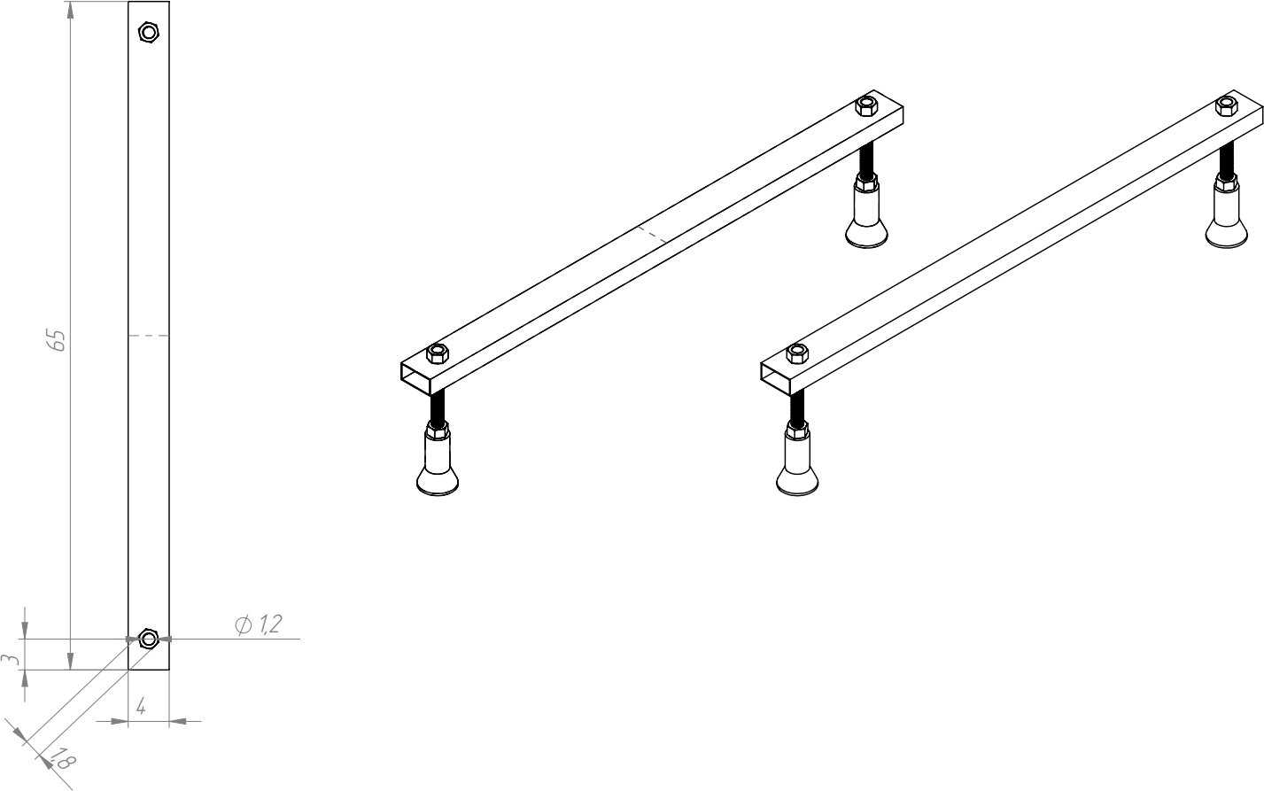 Особенности : | регулируемая высота ножек, установка на каркас |