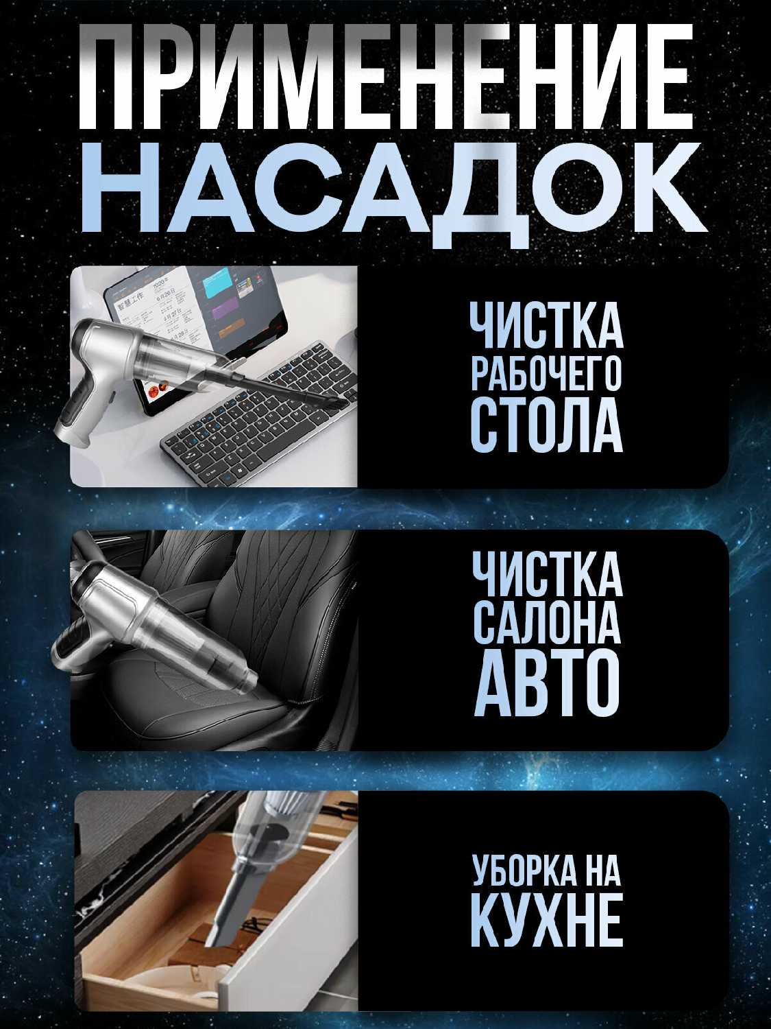 Пылесос идеален для автовладельцев, которые ценят оперативность: убрать песок с ковриков, крошки между сиденьями или пыль с приборной панели можно за пару минут. Таксисты называют его спасением для поддержания чистоты между пассажирами. В доме устройство используют для локальной уборки — чистки компьютеров, клавиатур, мягкой мебели, швейных машин, плинтусов. Ручной формат оценят те, кому надоело таскать тяжёлый пылесос для мелких задач. Отдельная категория — любители техники: функция продува позволяет чистить комплектующие ПК, а вакуумный режим — упаковывать вещи в пакеты. Однако для больших помещений или генеральной уборки он не подходит. Пылесос часто дарят мужчинам как практичный аксессуар для авто или гаджет для хобби. Девушки отмечают, что им удобно убирать шерсть питомцев с диванов.