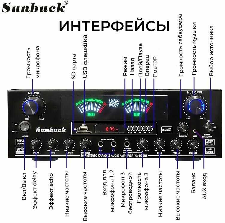 Отзывы о Пятиканальный усилитель Sunbuck AV-888BT