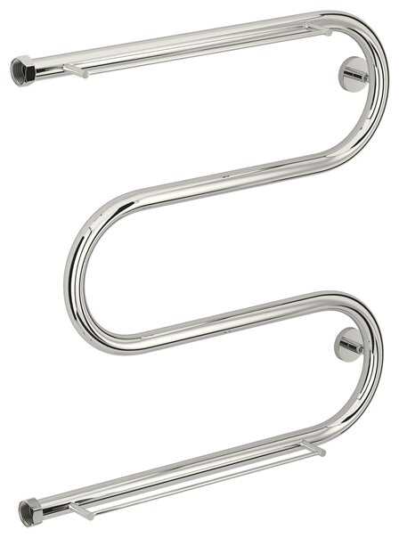 - М-образный водяной полотенцесушитель с полкамиподключение к системе центрального отопления