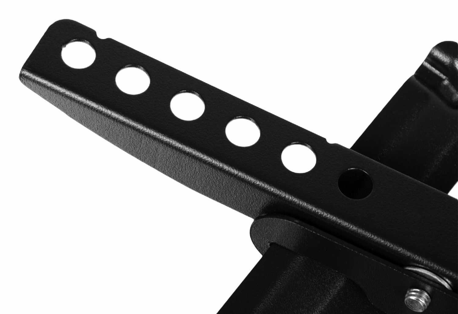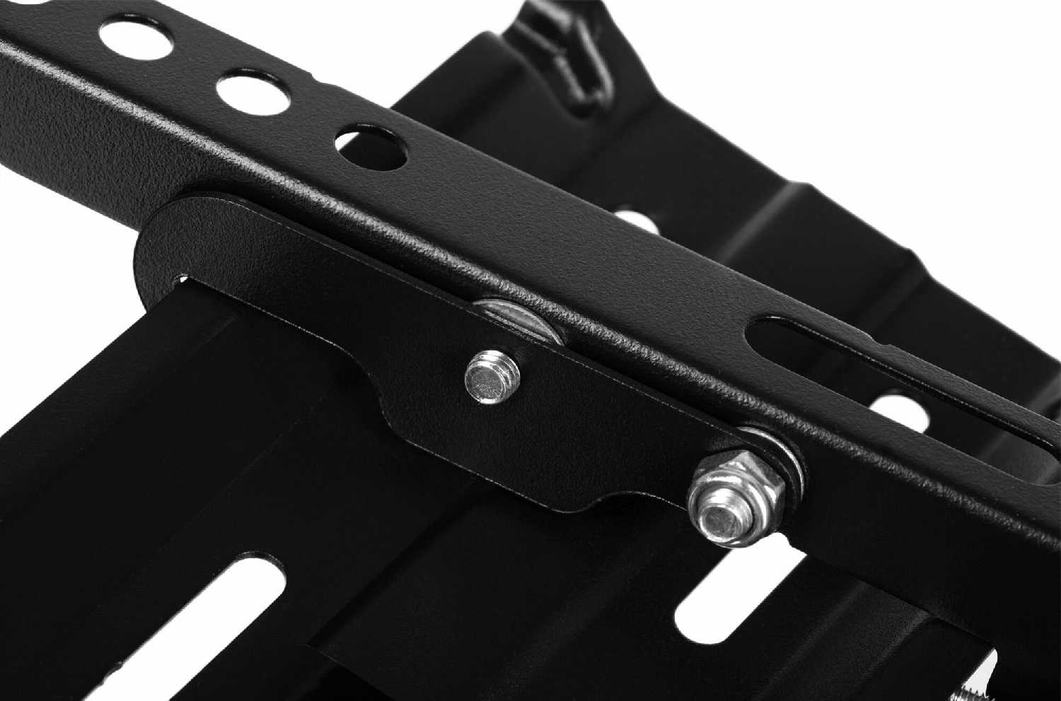 Установка кронштейна требует тщательной разметки: ошибки при сверлении отверстий в стене сложно исправить без переделок или использования напильника для коррекции пазов. В комплекте есть пузырьковый уровень, упрощающий выравнивание по горизонту, но его точность некоторые пользователи ставят под сомнение. Основная проблема монтажа — доступ к фиксирующим болтам: при установке телевизора с диагональю от 32 дюймов требуется очень длинная отвёртка, так как корпус перекрывает зону затяжки. Угол наклона ограничен 20 градусами, что достаточно для комфортного просмотра, но не подойдёт для нестандартных ситуаций.