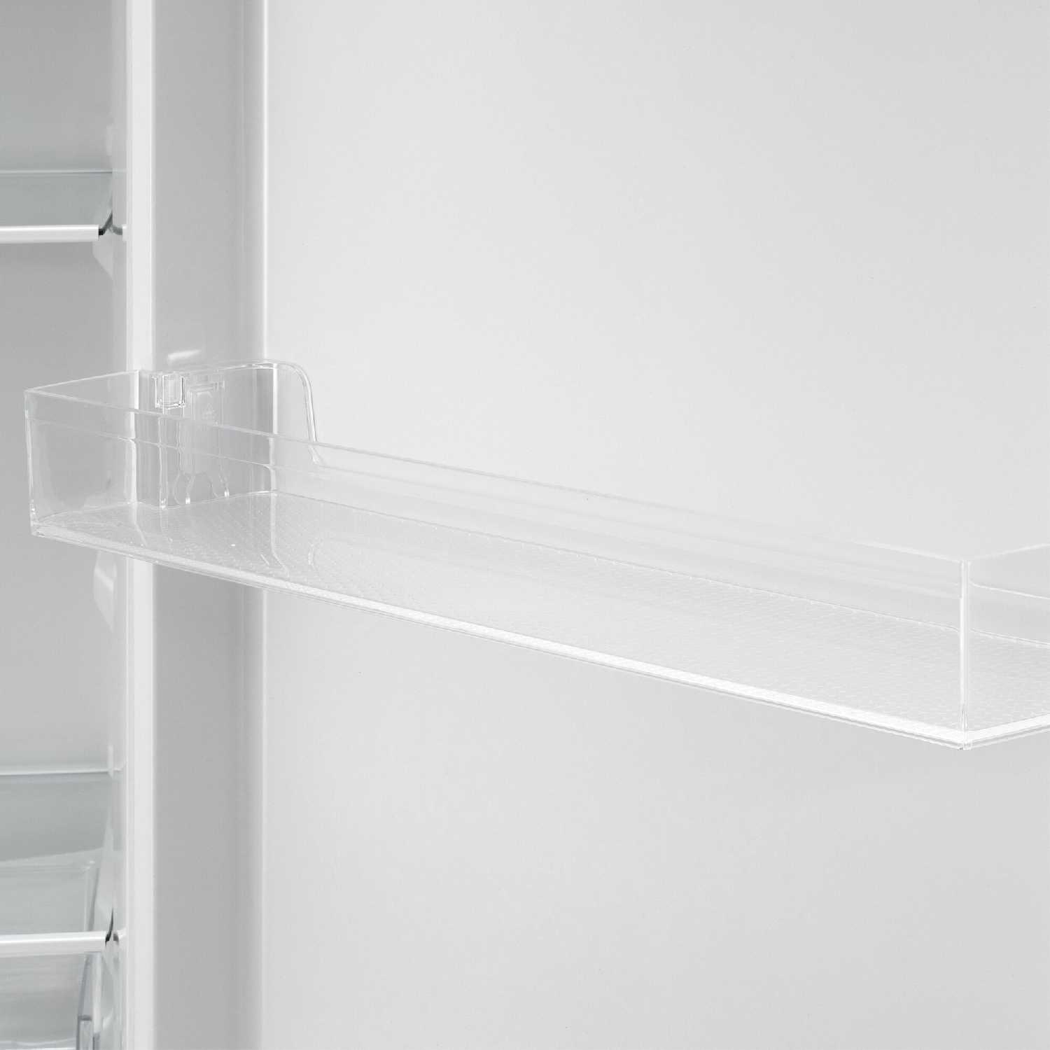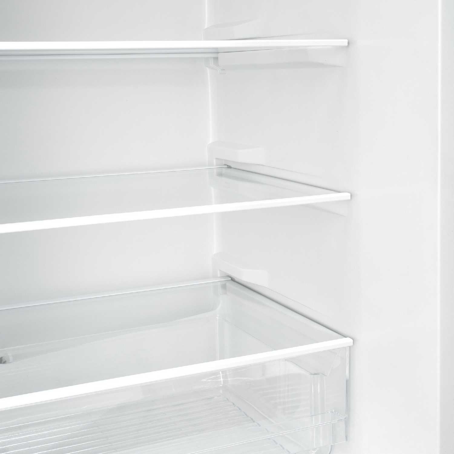 На двери глубокие лотки. Большая зона свежести. Стеклянные полки с возможностью переставления.