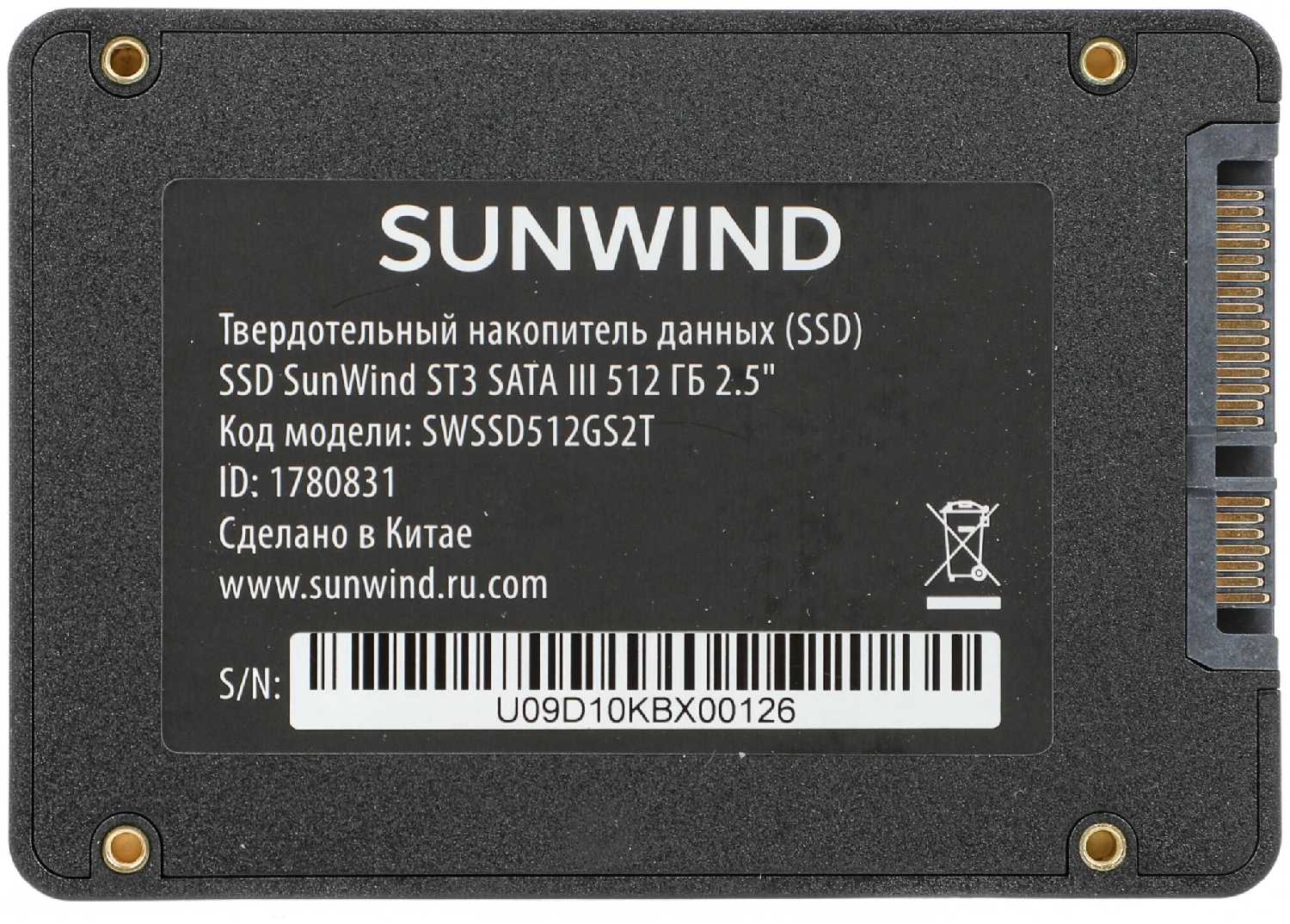 SSD Sunwind ST3 512 ГБ SATA SWSSD512GS2T - это хороший выбор для улучшения производительности вашего компьютера, увеличения скорости загрузки и уменьшения времени ожидания при работе с файлами и программами.