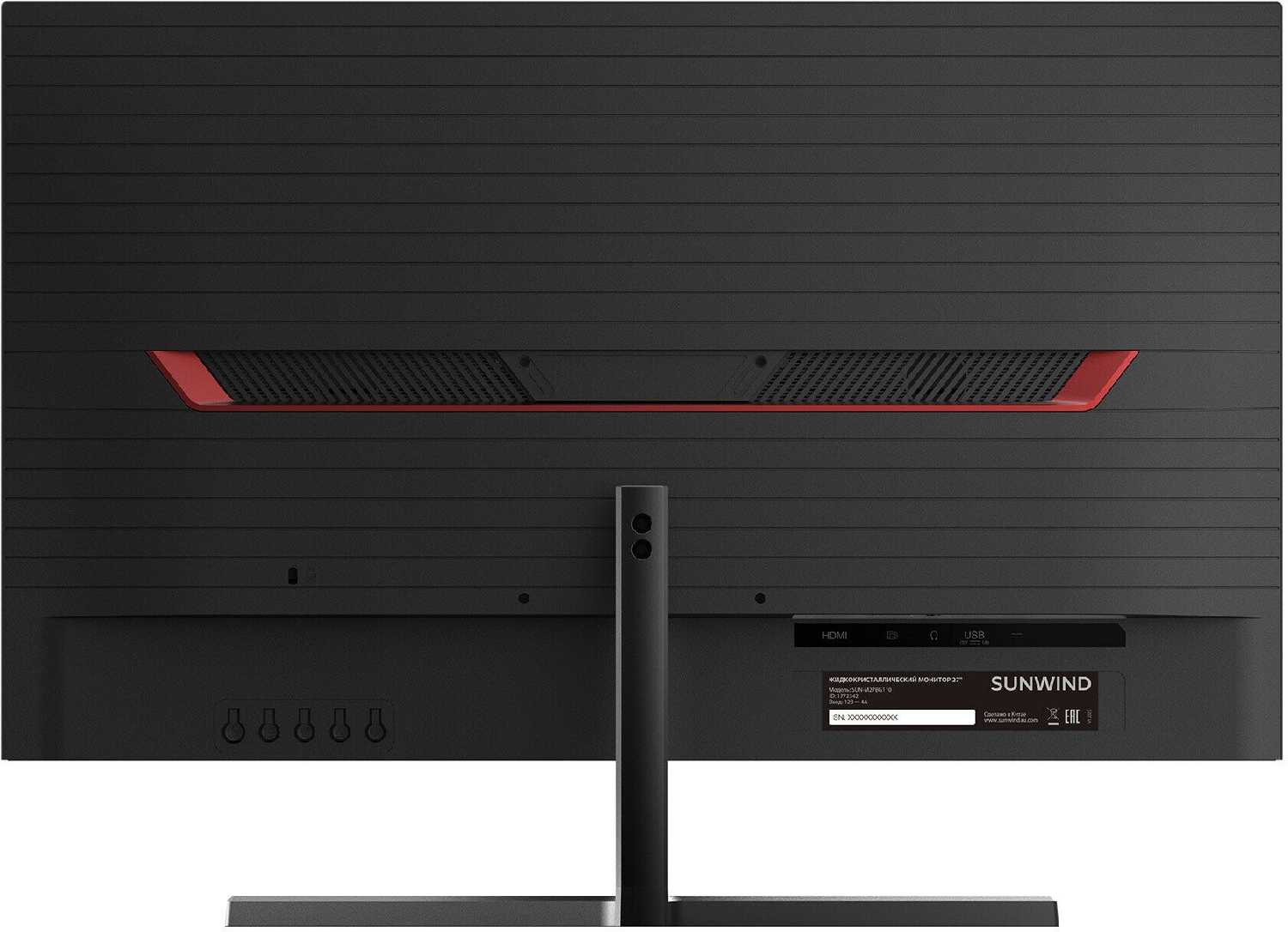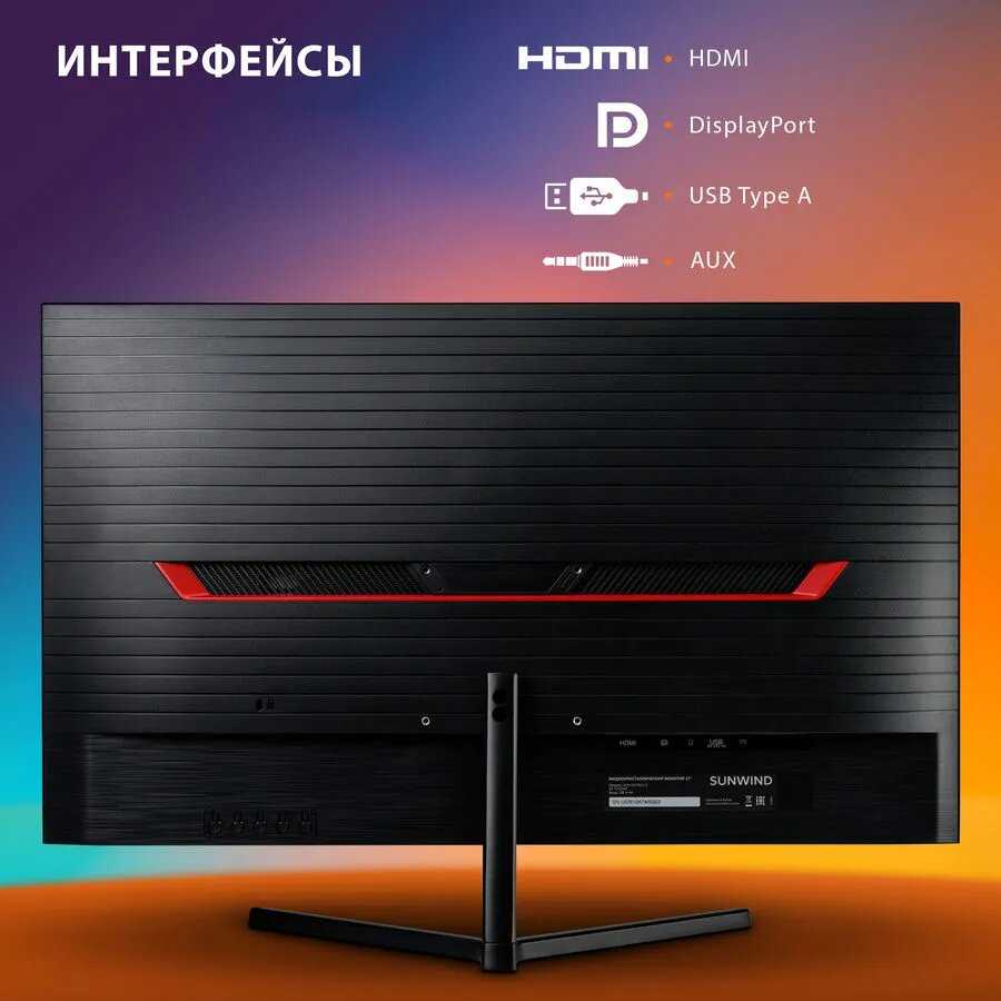 Монитор Sunwind M27 оснащен VA-матрицей, обеспечивающей статическую контрастность 4000:1 и глубокий черный цвет, что выгодно отличает его от многих бюджетных IPS-аналогов с контрастностью 1000:1. Пользователи отмечают сочность и насыщенность изображения, особенно после ручной калибровки цветов, хотя заводские настройки часто описываются как неестественные или "вырвиглазные". Поддержка HDR10 работает, но активация этой функции блокирует часть настроек изображения. Технологии AMD FreeSync и Adaptive Sync присутствуют и эффективно устраняют разрывы кадров в играх, однако заявленная совместимость с G-Sync не подтверждается на практике — панель управления NVIDIA не распознает официальную поддержку.