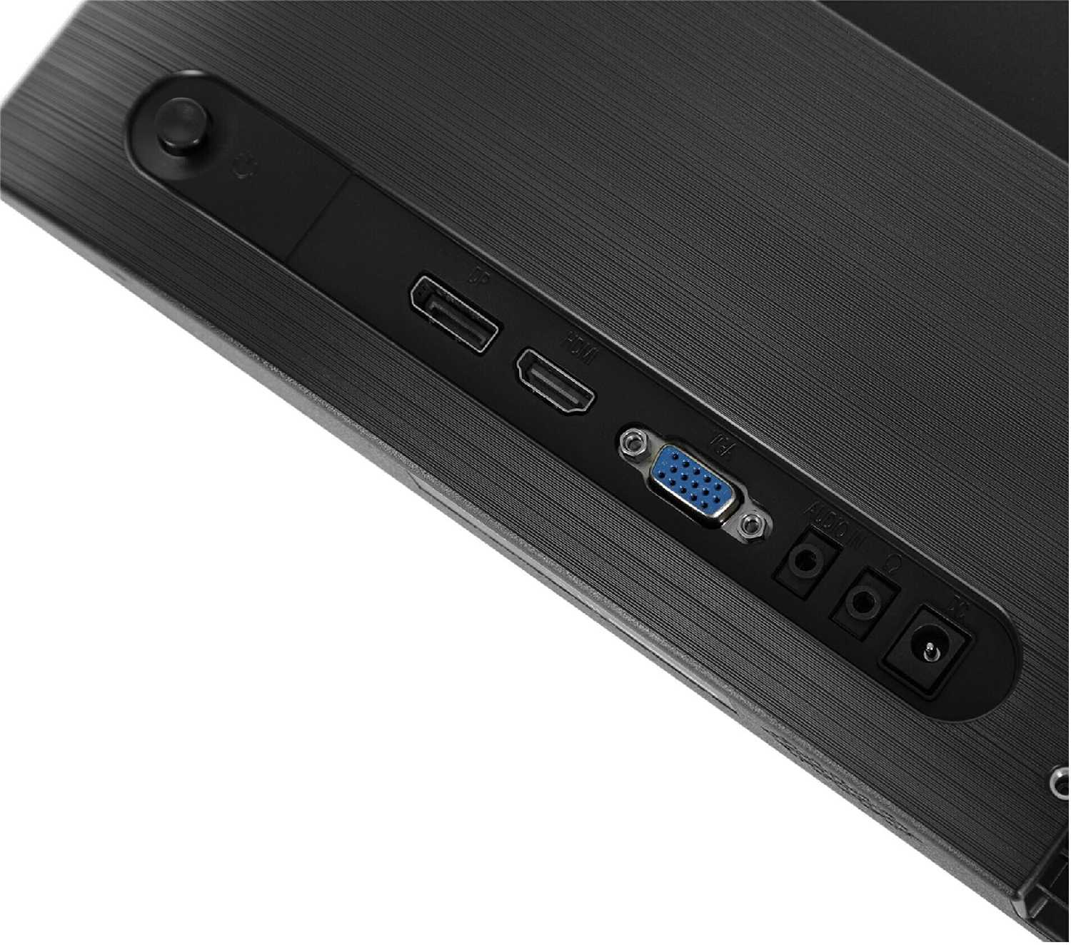 Монитор оснащён HDMI (кабель в комплекте), VGA и DisplayPort. Качество картинки через VGA заметно хуже (светлее, менее чётко), чем через цифровые интерфейсы. Разъёмы расположены горизонтально, что требует 5 см свободного пространства за подставкой. Отсутствие DVI-D компенсируется переходниками. -