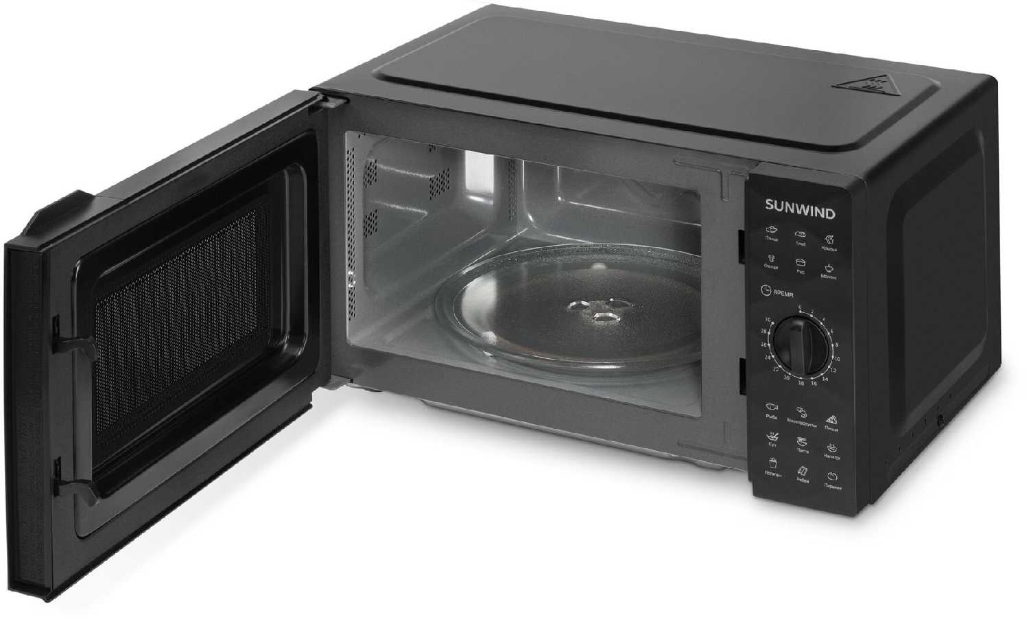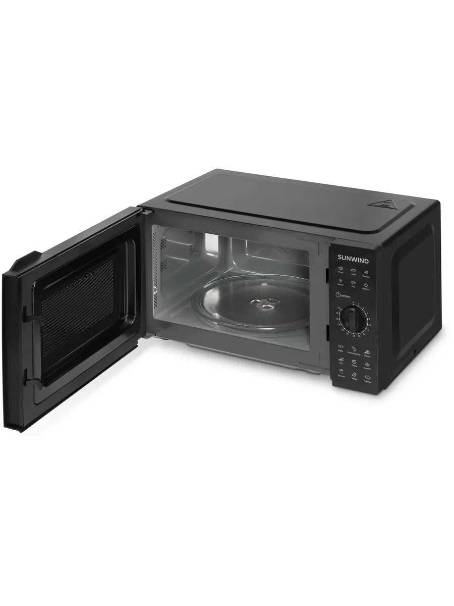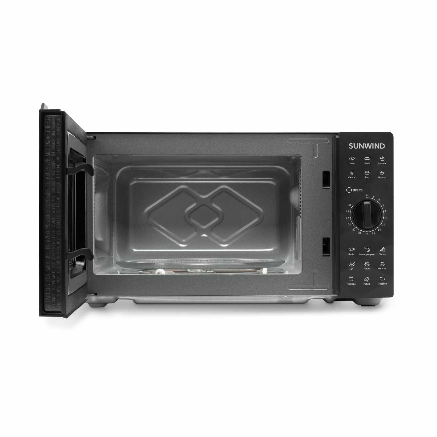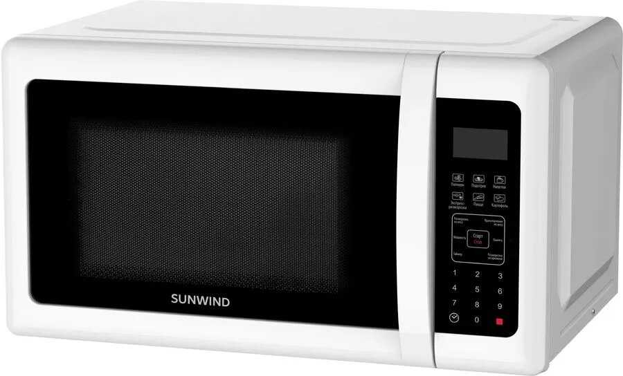 - + Микроволновая печь SunWind SUN-MW002 — отличный выбор для тех, кто ищет компактное и идеально подходит для разогрева и приготовления пищи в небольших квартирах или на даче.