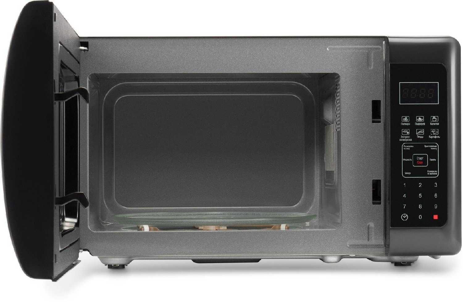 - Фиксированный диаметр поворотного стола ограничивает размеры нагреваемых блюд.