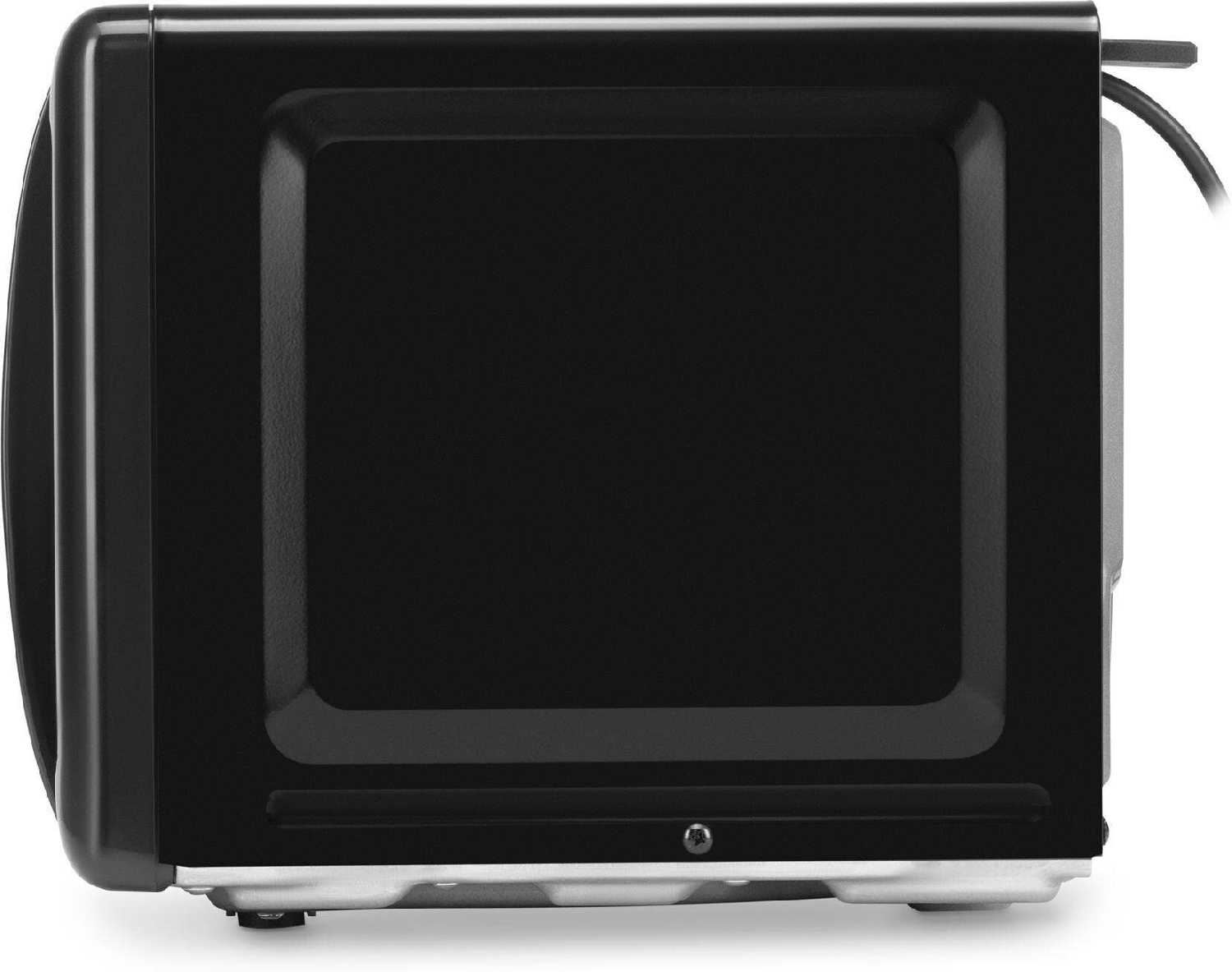 Компактные габариты (45-49 см в ширину) позволяют разместить устройство на ограниченном пространстве малогабаритных кухонь или общежитий, а эргономичная ручка обеспечивает легкое открывание дверцы, хотя у отдельных экземпляров наблюдается тугой ход или необходимость приложения усилия для плотного закрывания. Прочное эмалевое покрытие внутренней камеры устойчиво к царапинам и упрощает удаление жировых загрязнений, тогда как черный глянцевый корпус требует частой протирки из-за видимости отпечатков пальцев и пыли. Дисплей с часами и подсветкой сохраняет активную индикацию после завершения работы до принудительного закрытия дверцы, а короткий сетевой шнур ограничивает варианты установки. Механизм поворотного стола демонстрирует стабильную работу без смещения посуды, но при длительной эксплуатации возможны посторонние шумы, указывающие на износ компонентов.