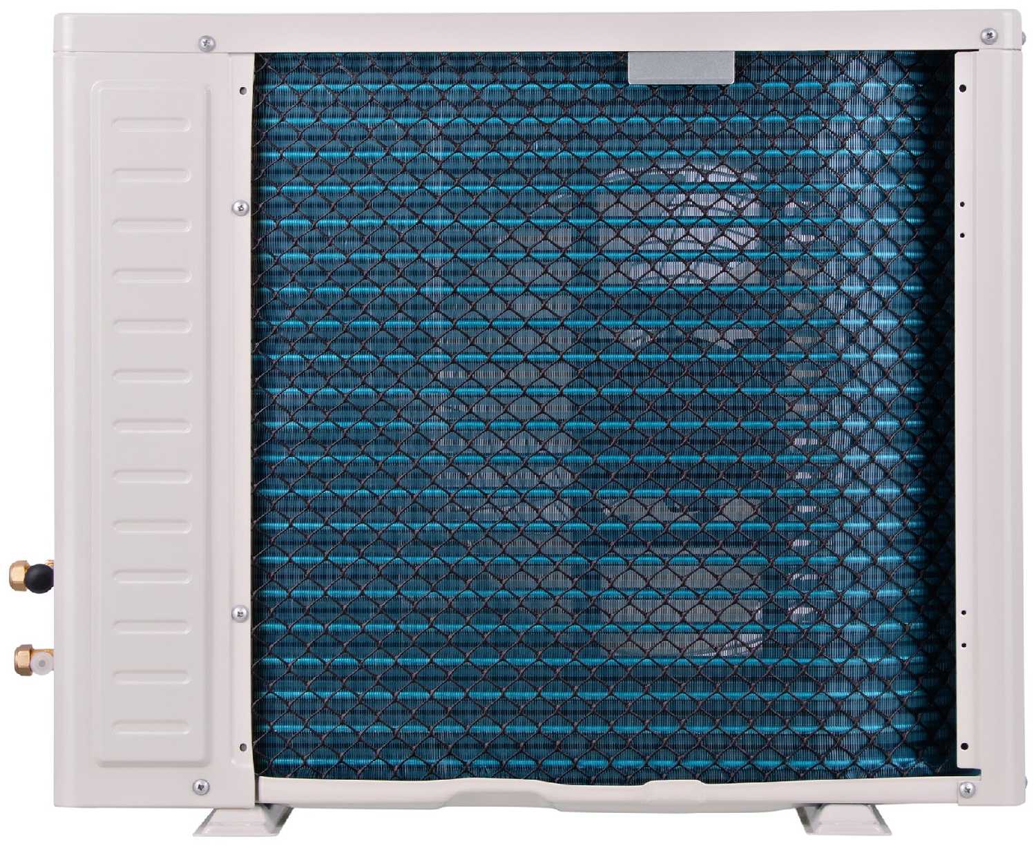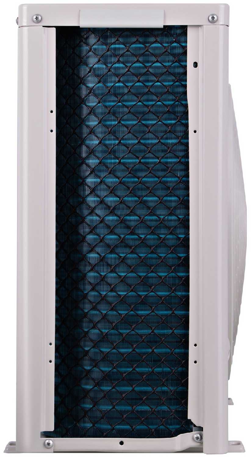- Медные трубки толщиной 0,8 мм и алюминиевый радиатор во внешнем блоке обеспечивают долговечность теплообмена.