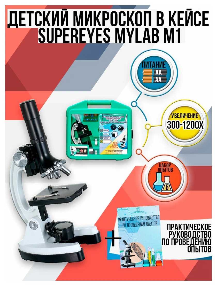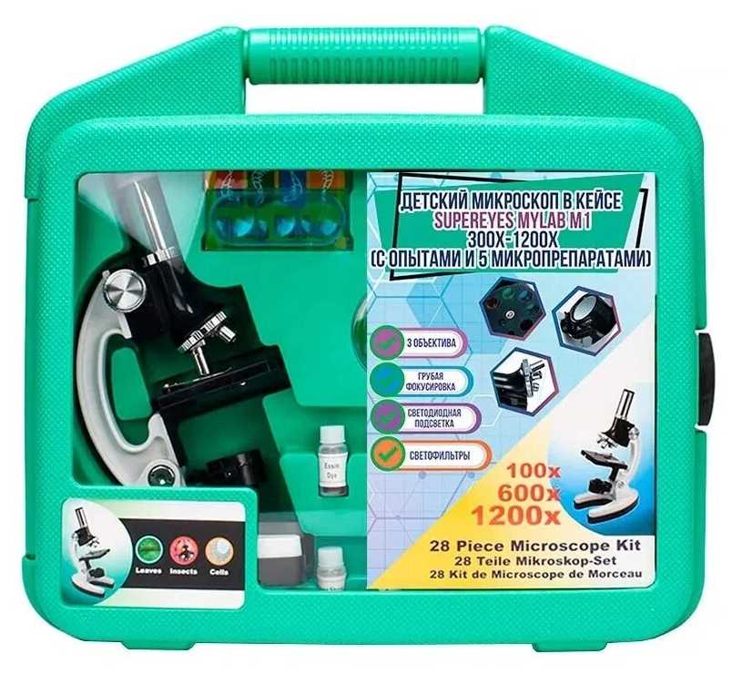 Отзывы о Детский микроскоп в кейсе Supereyes MyLab M10, 300x-1200x (с опытами и 5 микропрепаратами)