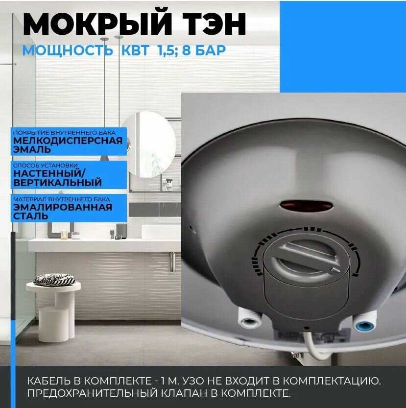 | Системы защиты : | УЗО, обратный клапан, от включения без воды, от перегрева, предохранительный клапан |