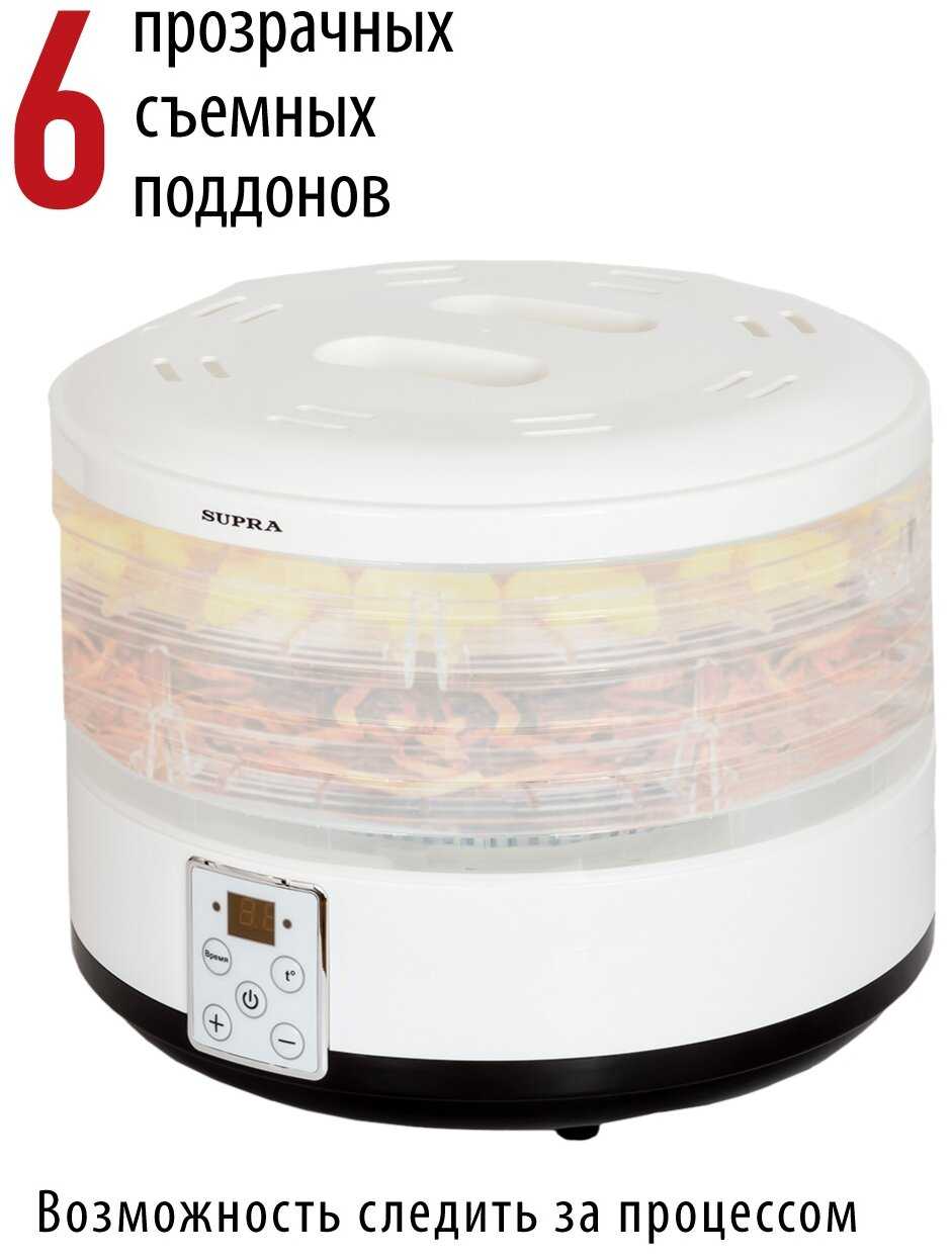 Сушилка очень понравилась. Бал снизил только за отсутствие подложки для пастилы. В инструкции написано, что на пергамент можно выкладывать, но у других фирм идёт спец. подложка. Успели посушить инжир (на 55 гр. сушим 48 часов) , яблоки (на 55 гр. сохнут 24 часа). По инструкции меньше время, но мы не мельчим с нарезкой и сушим до состояния сухофруктов, т.к. не едим чипсами, а для длительного зимнего хранения. Пару-тройку раз переставляю снизу вверх поддоны (все одинаковые, можно менять хоть как) , для большей равномерности просушки. Высокую температуру не ставим, чтобы меньше термообработки было. Очень тихо работает, чуть громче куллера от ПК. Лёгкая и точная регулировка времени и температуры. Поддоны из достаточно мягкого пластика, не треснут в случае падения. Моются легко (в посудомойке нельзя, по инструкции). В нарезанном виде вмещает 7 л. ведро фруктов. Внешне симпатичный современный дизайн.