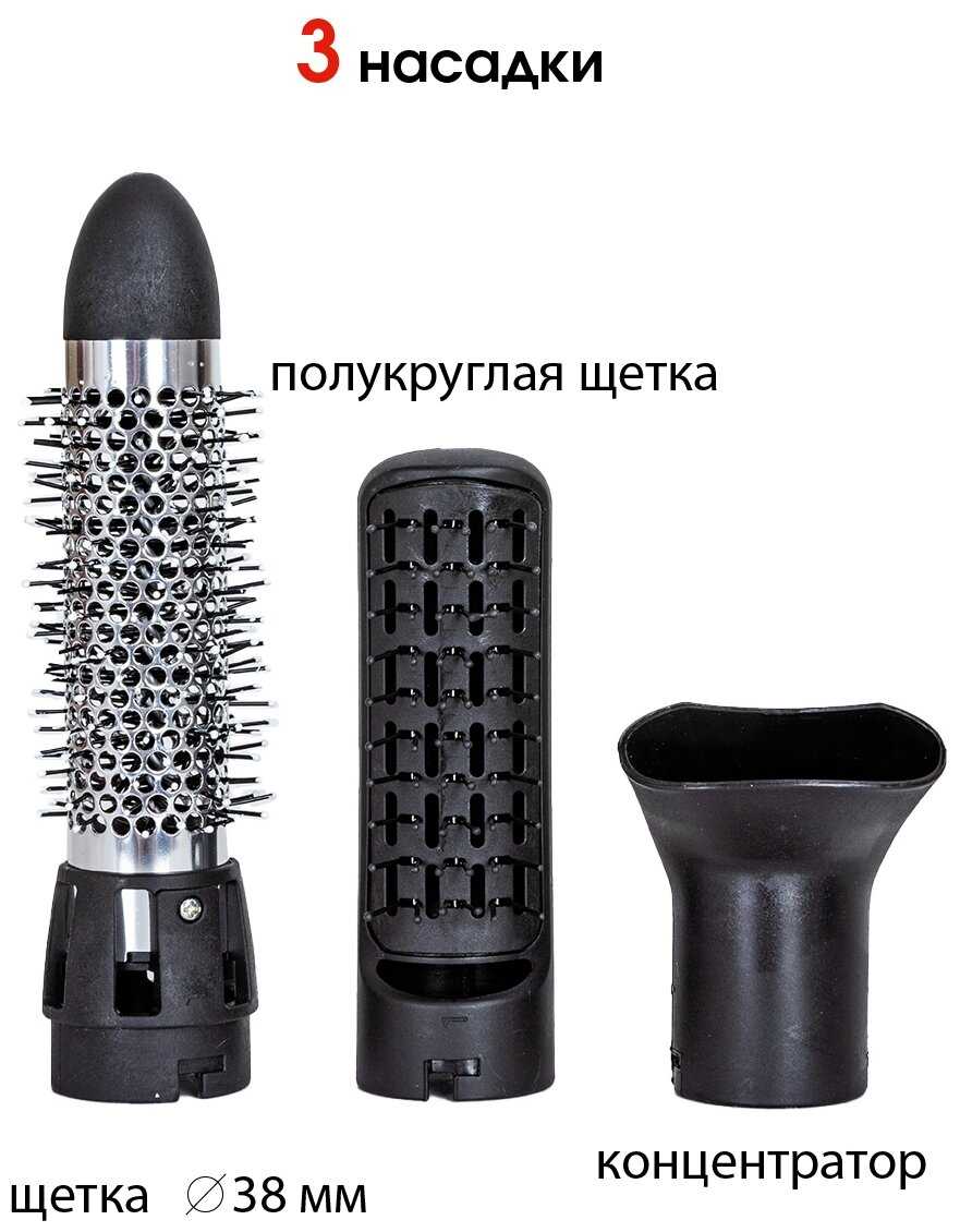 Подробная комплектация : | фен, концентратор, полукруглая щетка, щетка диаметром 38 мм, гарантийный талон, инструкция на русском языке |