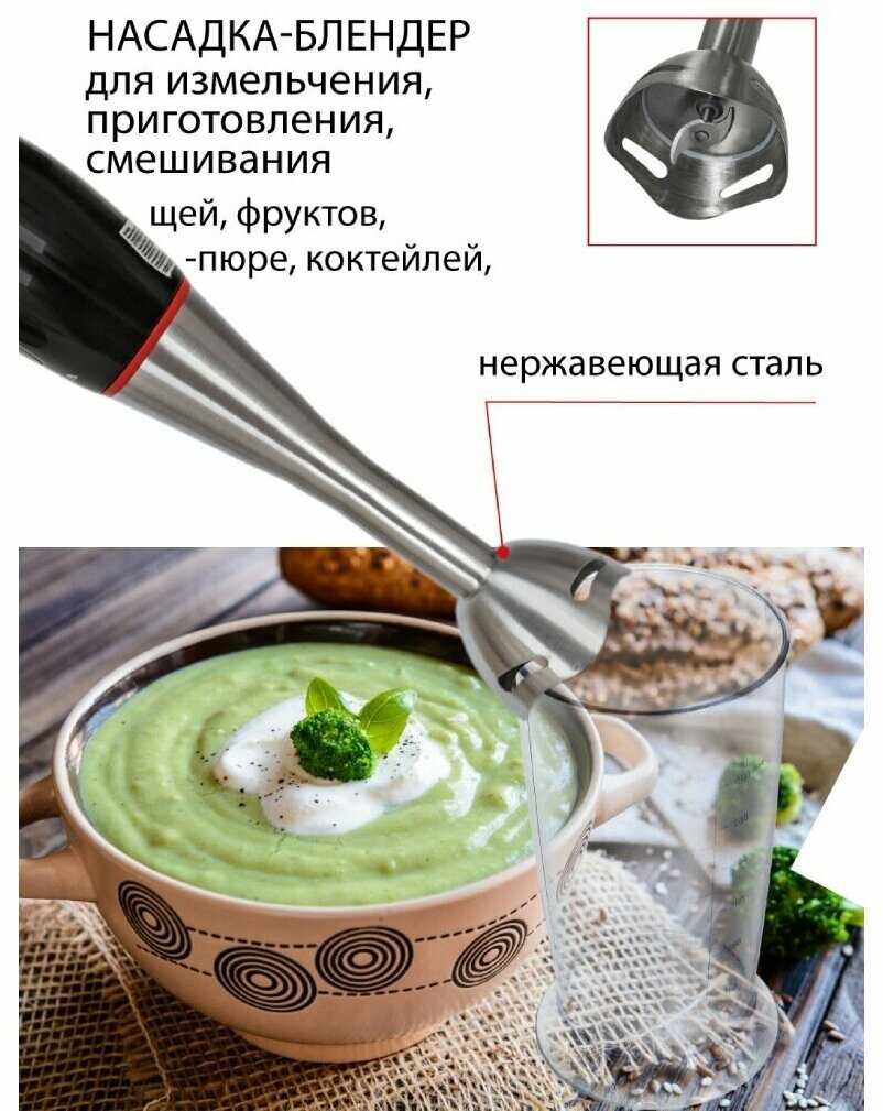 Насадки : | венчик для взбивания, для приготовления пюре, измельчитель |