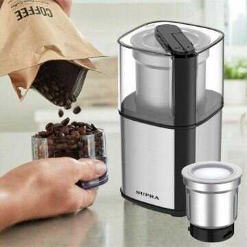 - + кофемолка отличная пользуясь много лет, этой фирмы пользуюсь недавно, но она ни чем не отличается от той которая вышла из строя, Супра даже мне больше понравилась, две чаши, одна для специй, другая для кофе, чаши закрываются крышкой и снимаются, что очень удобно, недостатков нет