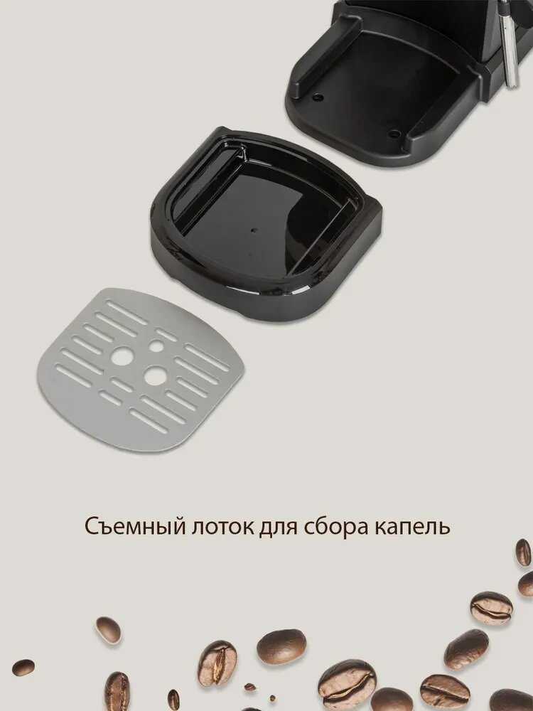 - Конструкция включает съемный поддон для сбора капель и регулируемую или съемную подставку для чашек, что повышает адаптивность к посуде разной высоты и упрощает уборку.