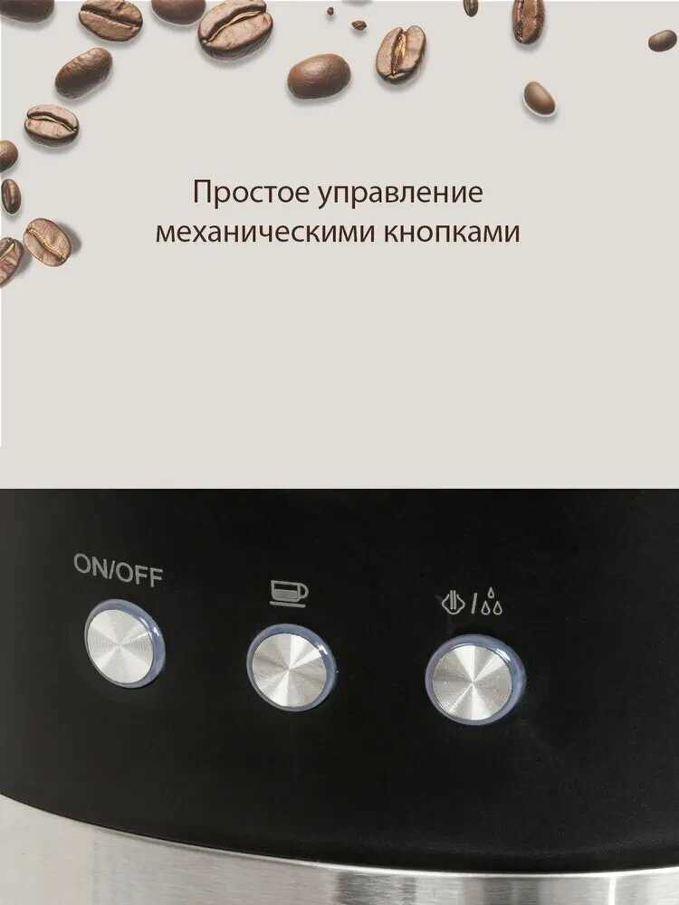 Управление осуществляется с помощью нескольких кнопок и переключателя, что делает его интуитивно понятным и простым даже для неопытных пользователей. Уход заключается в промывании рожка, протирании паровой трубки после вспенивания молока и опорожнении съемного поддона для сбора капель. Многоразовый металлический фильтр легко моется и не требует покупки сменных бумажных фильтров, что упрощает эксплуатацию и экономит на расходниках. -