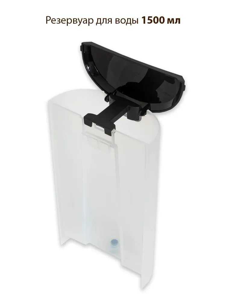 - Объем бака рассчитан на приготовление нескольких порций (до 4-5 чашек) без необходимости долива, что оптимизирует процесс приготовления кофе для семьи или небольшого коллектива.