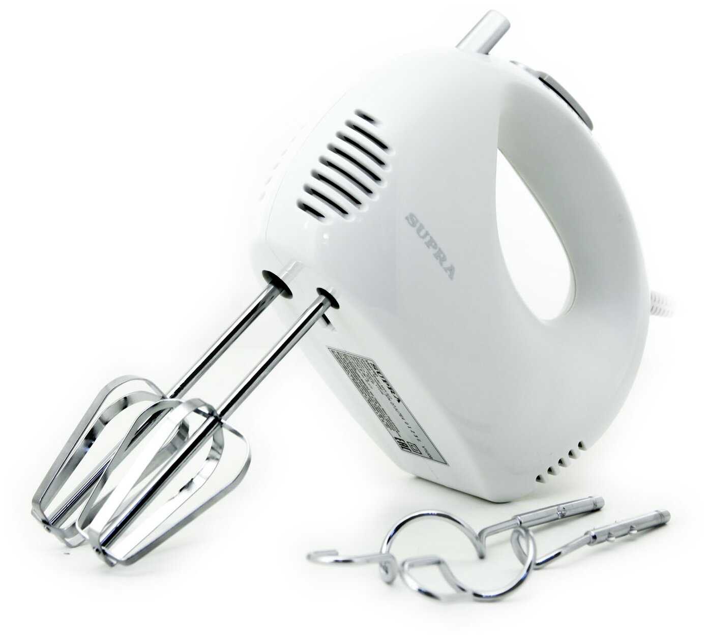 Миксер Супра оправдал своё название. Компактный,но шустрый. Покупался он в замену сломанному миксеру точно такого же формфактора,но другого производителя. По характеристикам он чуть мощнее предыдущего,но результат его работы просто превзошёл все ожидания. Любой крем этим миксером взбиваешь за пару минут,да такой плотности,которую никогда не могли добится со старым миксером. Жена просто в восторге,а я жалею что не купил его раньше. Комплектация и функциональность стандартные.Кнопка сброса венчиков немного не удобная,но это абсолютно не мешает наслождаться безупречной работой этого миксера.