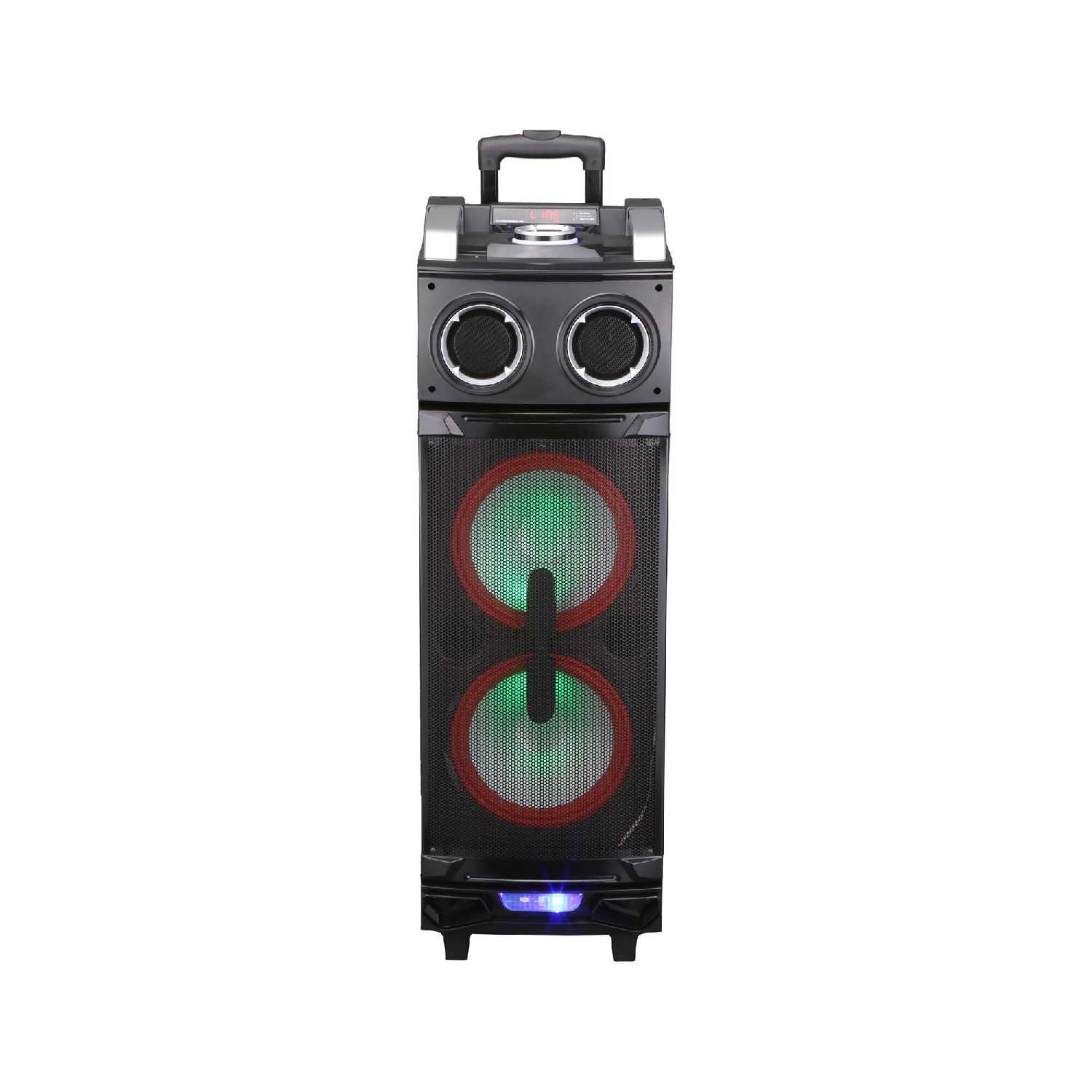 - + колонка сделана качественно, корпус дерево и алюминий, огромная, тяжёлая, но на колесиках, играет от провода и батареи, звук приятный для меня достаточно басов, цветомузыка, караоке можно подключить и флэшки, радио, а также есть провод доп провод. К покупке товар рекомендую, но продавец попался очень не компетентный и молча перенес доставку не идя на контакт.